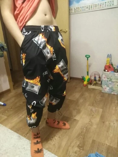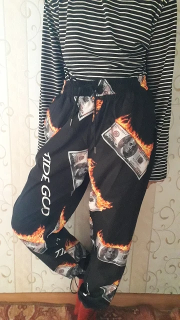Pants funny, bright and clear, fabric thin synthetic, for 15 years old height 175 chose XL, delivery three weeks in retail