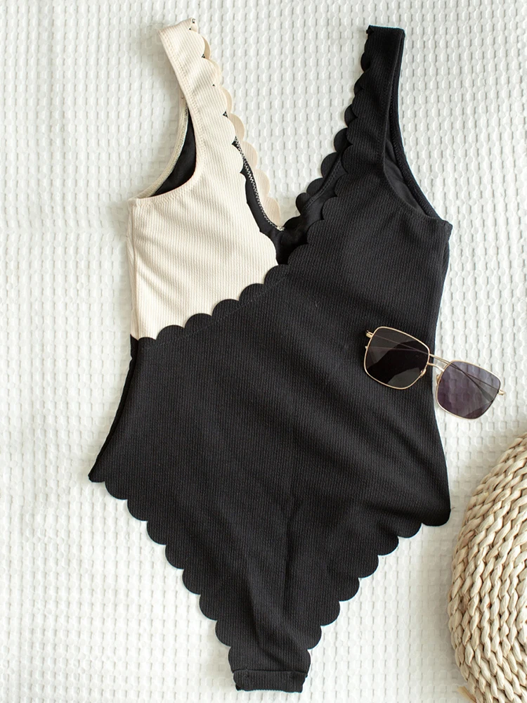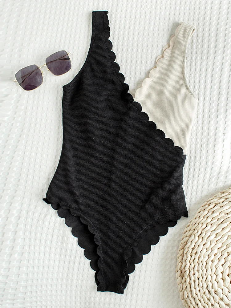 Elegant Black And White Ruffle Patchwork One Pieces Swimsuit Monokini Style 2023 JKP6022