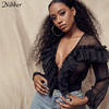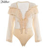 Elegant Black Khaki Full Sleeve French romantic ruffles office Casual Sexy Bodysuit JK3731P