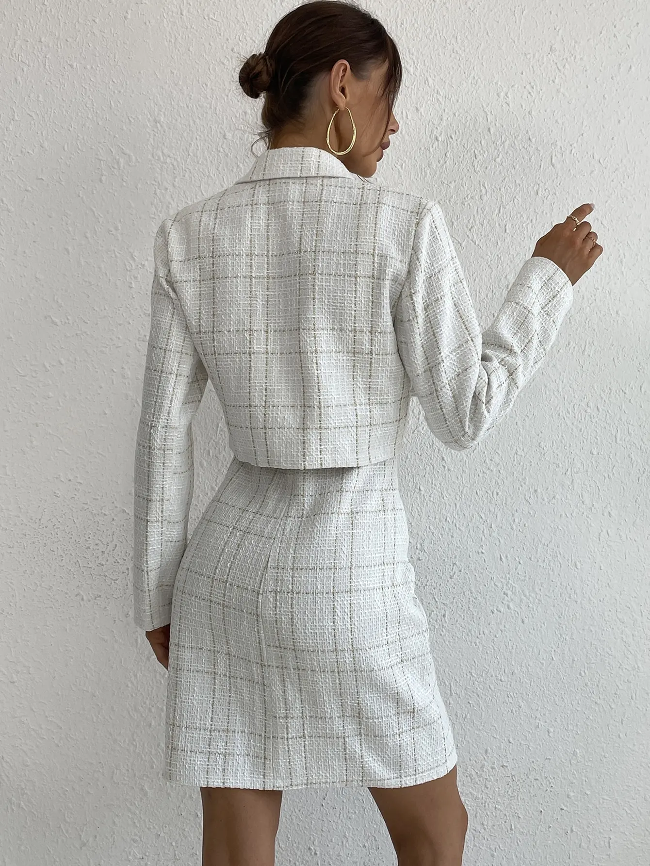 Elegant Blazer Mujer And Tweed Suspender Dress Women’s Outfits With Small Fragrance Buttons JKP6043