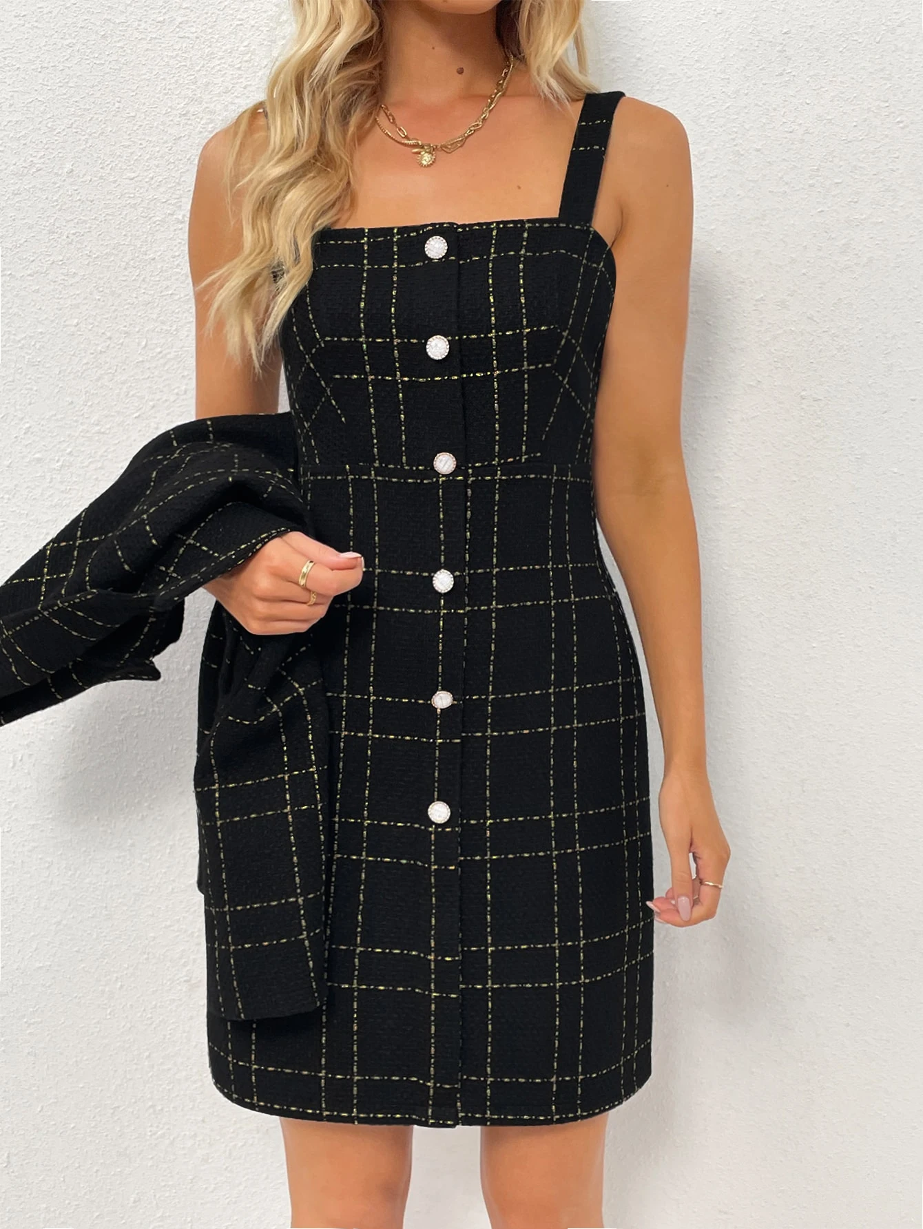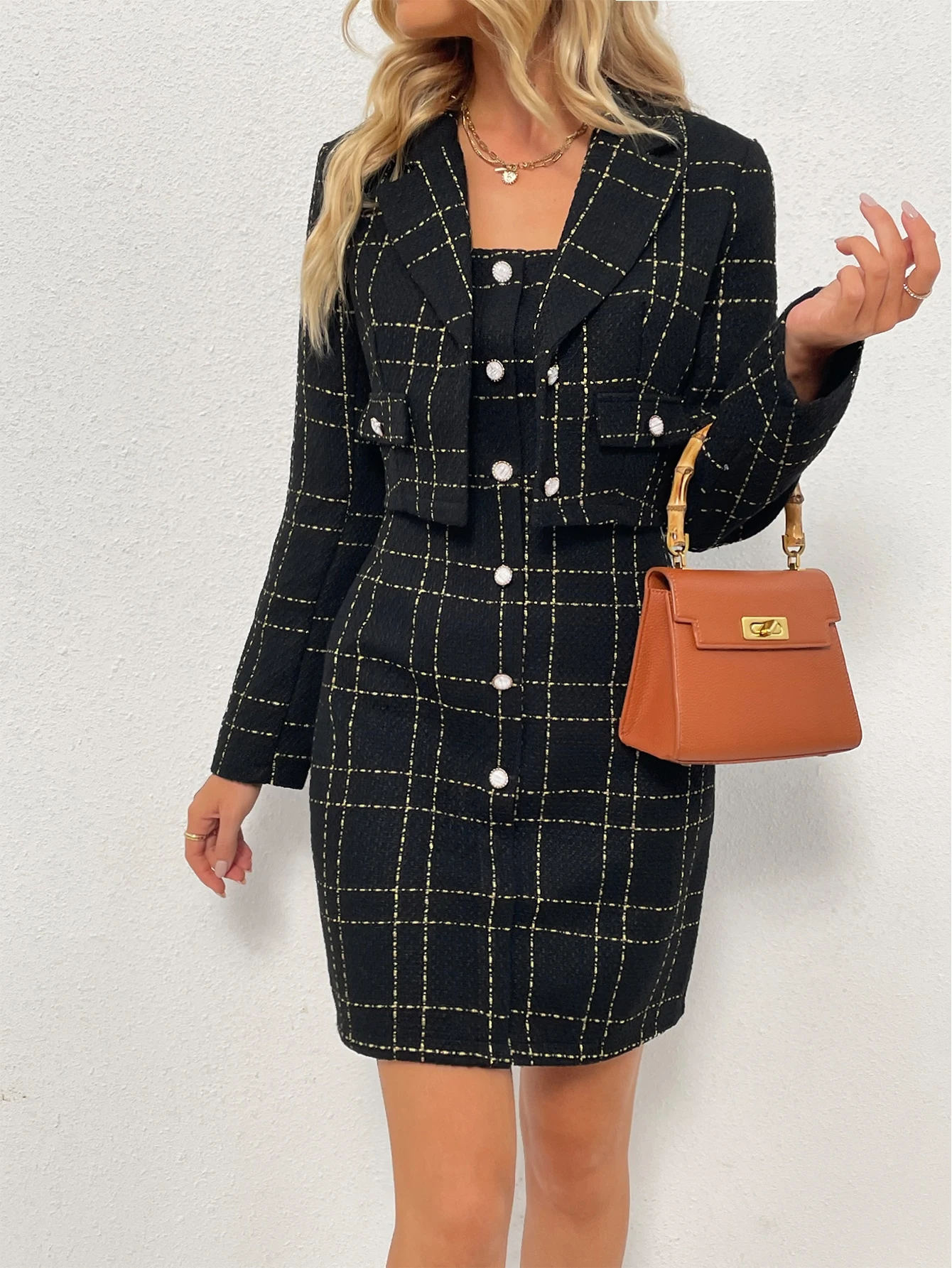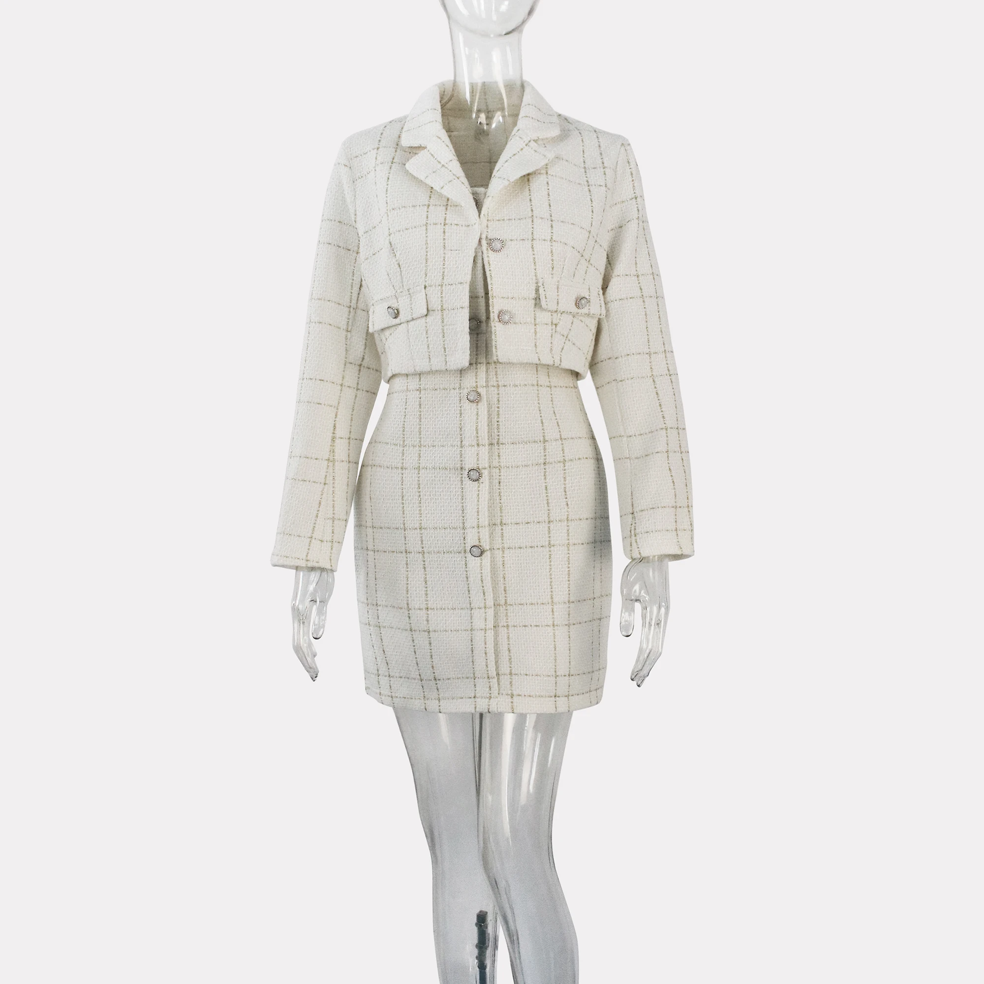 Elegant Blazer Mujer And Tweed Suspender Dress Women’s Outfits With Small Fragrance Buttons JKP6043