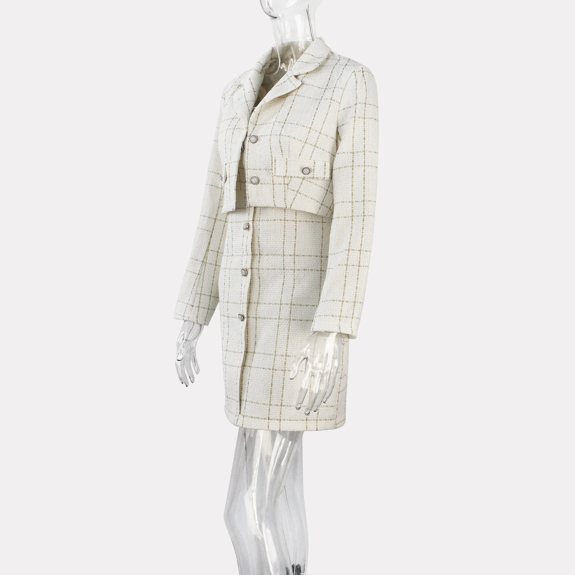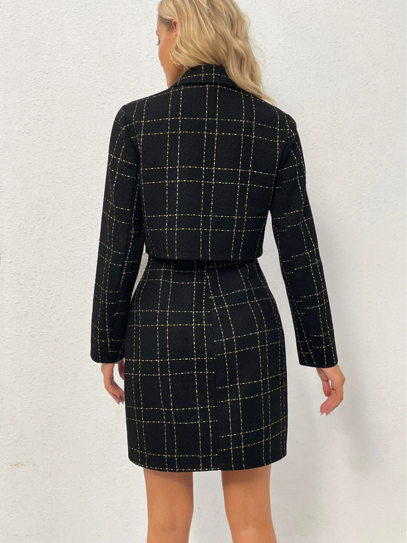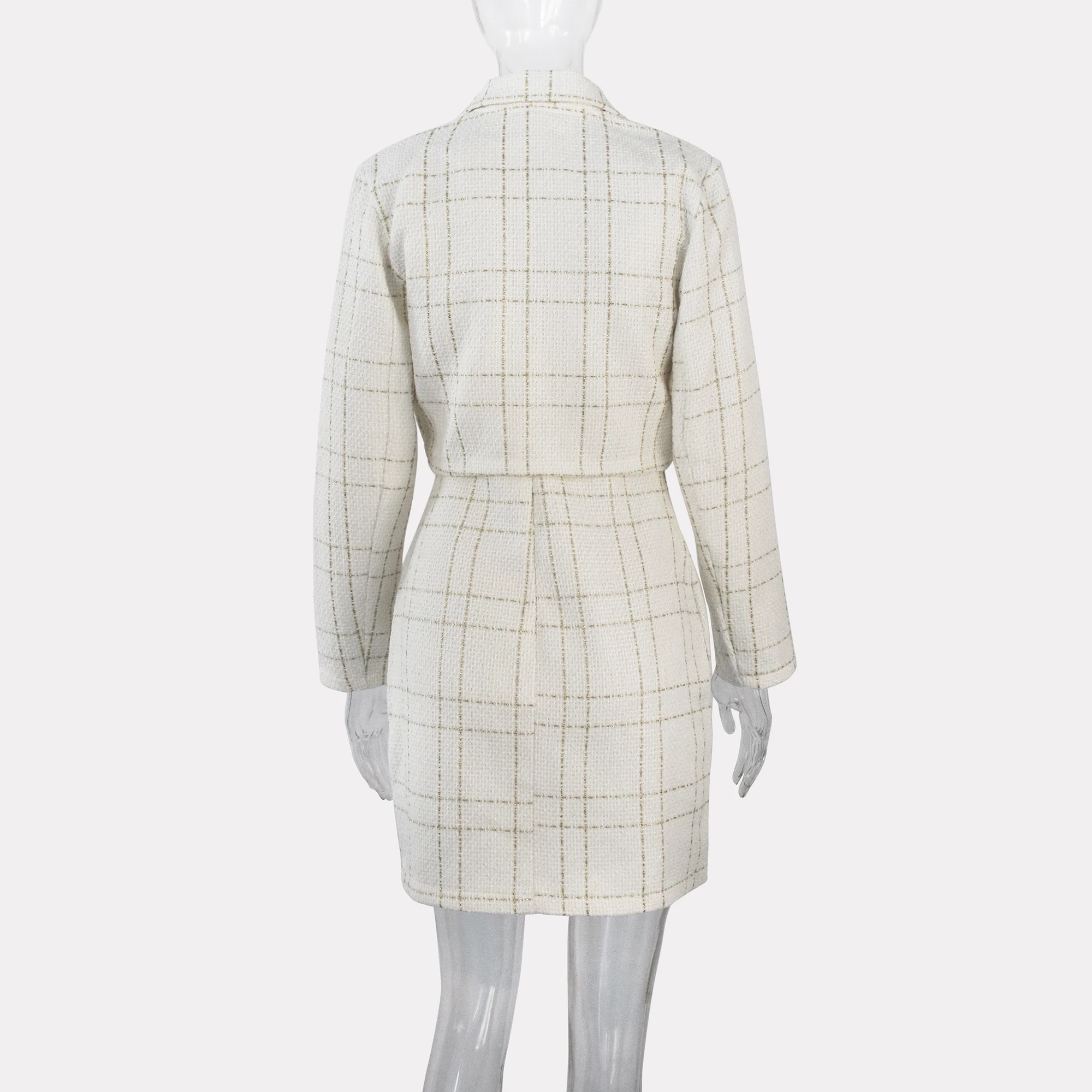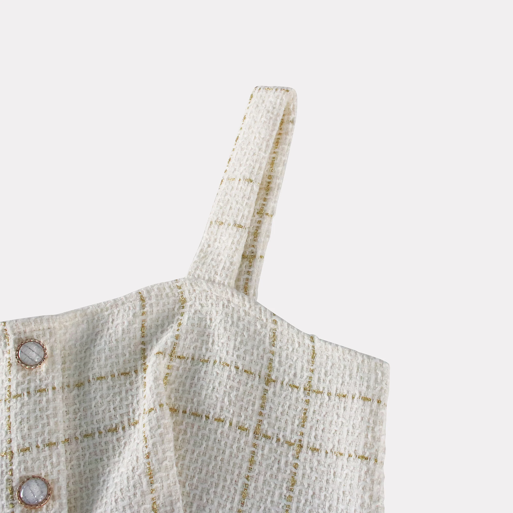 Elegant Blazer Mujer And Tweed Suspender Dress Women’s Outfits With Small Fragrance Buttons JKP6043