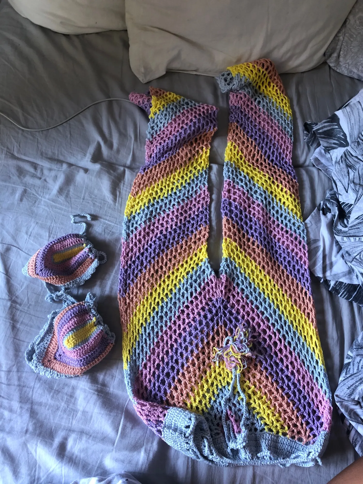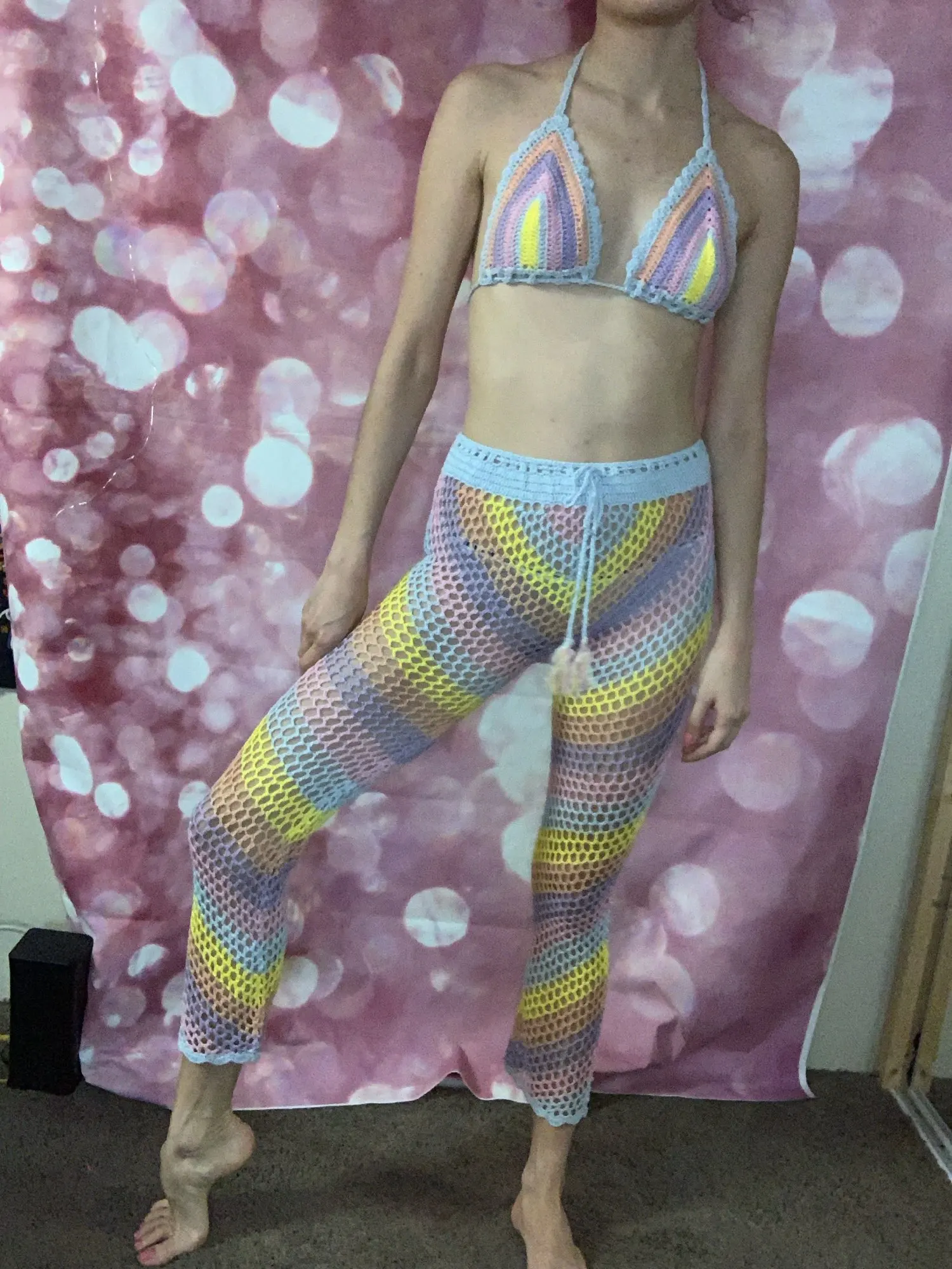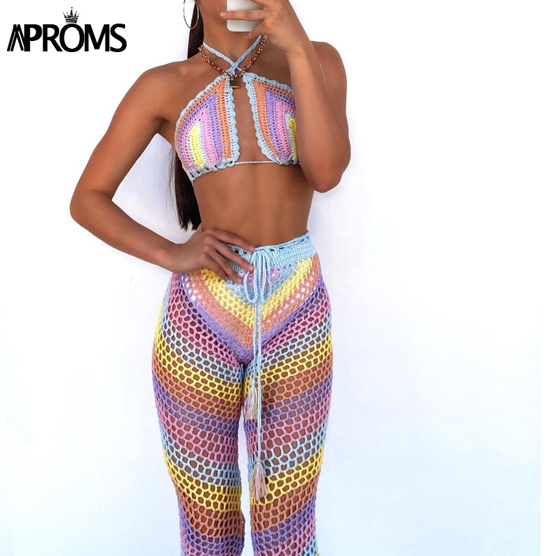 Elegant Colorful Festival Outfit Crochet Stretch Top and Pants JKP4717
