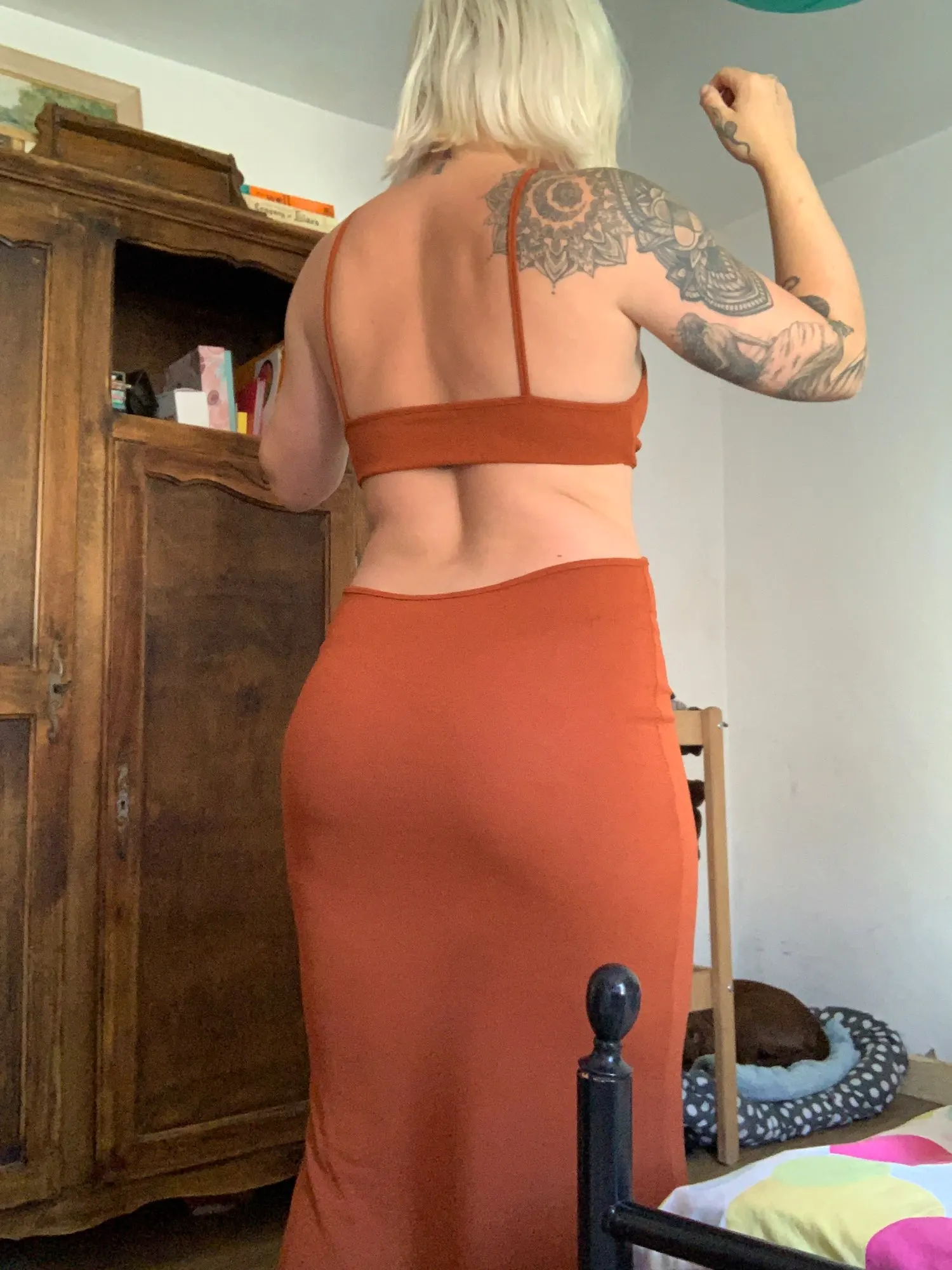 Perfect dress. Bad, careful! If you not want to show the body or intend to use some strap with this dress, no way! It shows quite and leaves the Bacon show.