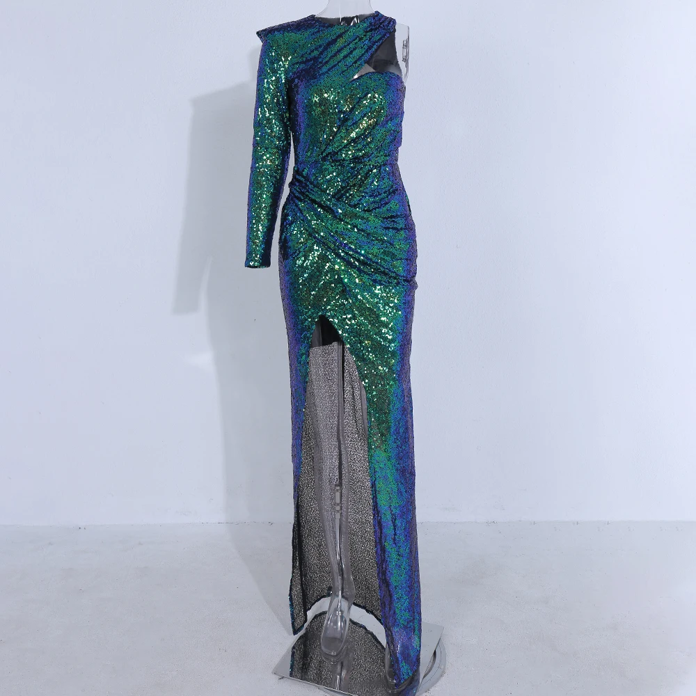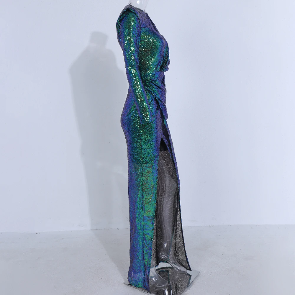 Elegant Maxi Dress Sexy Deep Sequin Backless Gradient High Split