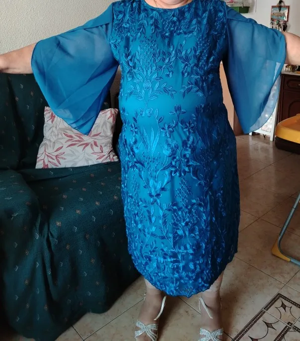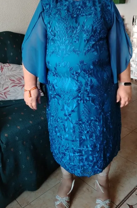 I was surprised when i saw this dress good material it feel really nice it’s a bit big but i will give it to my sister might order another that is not plus size