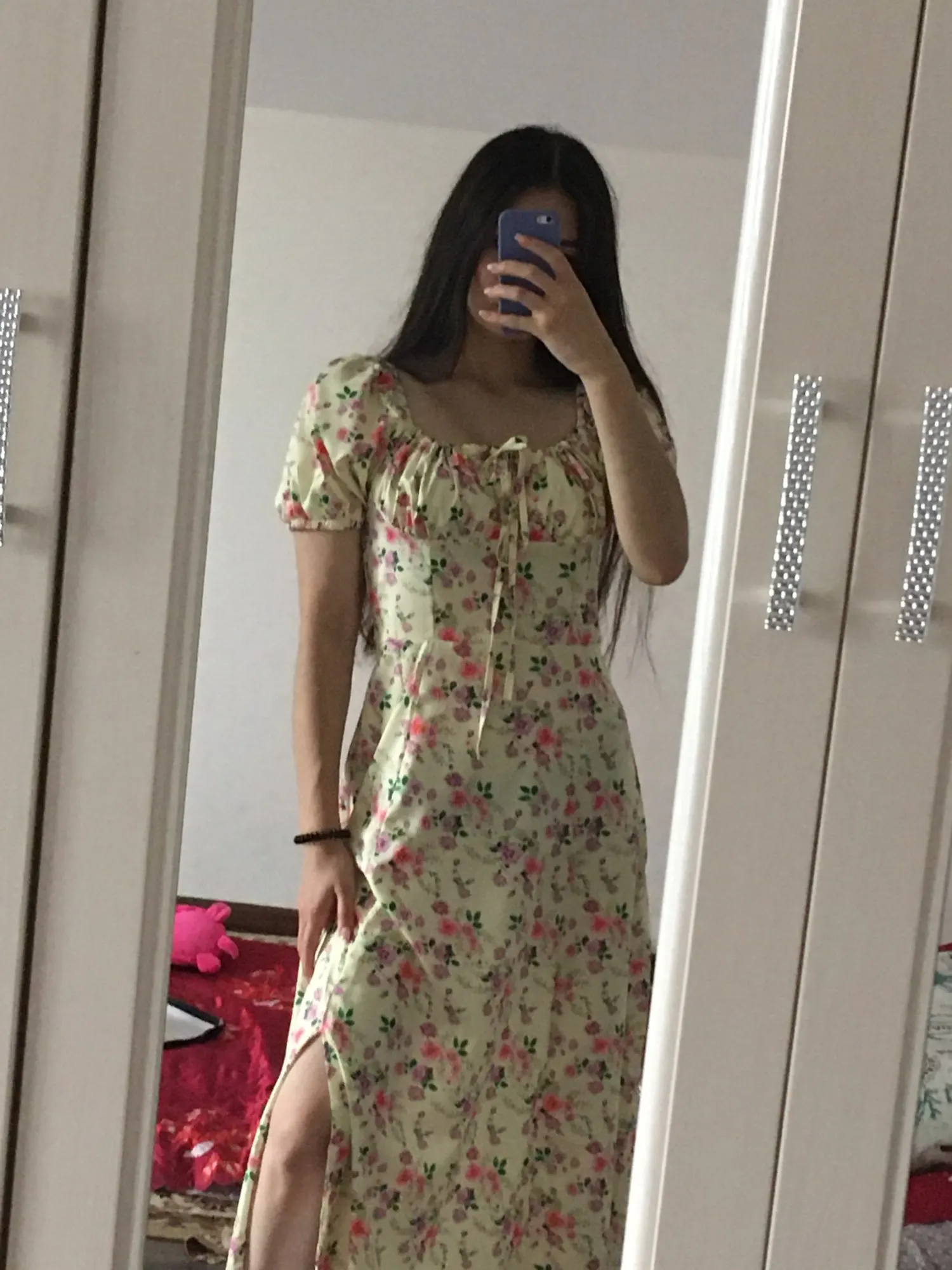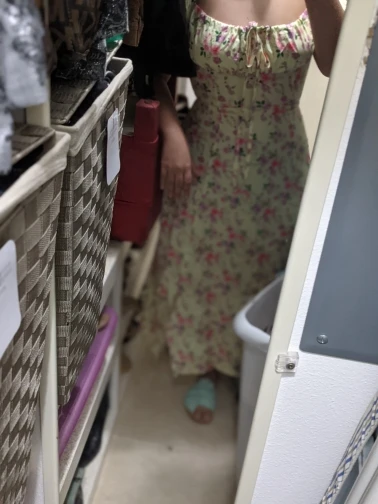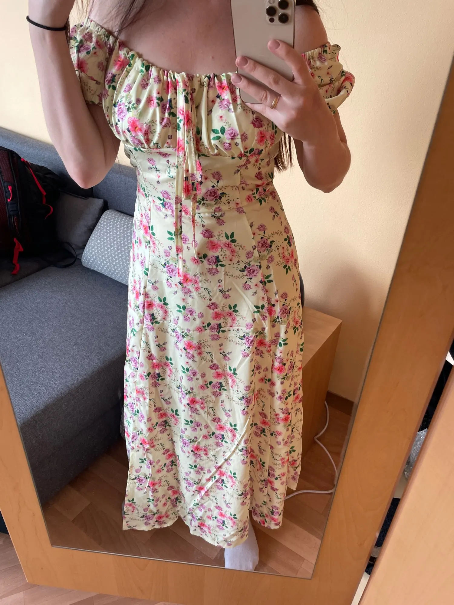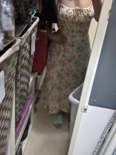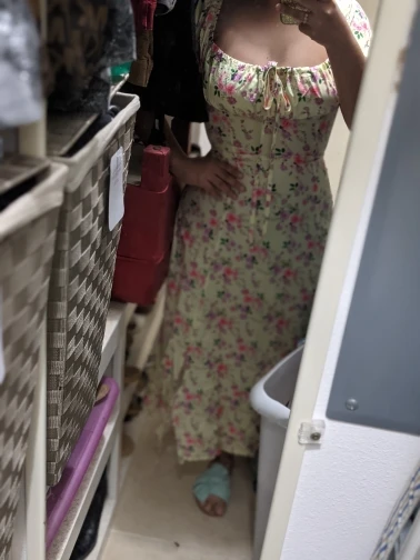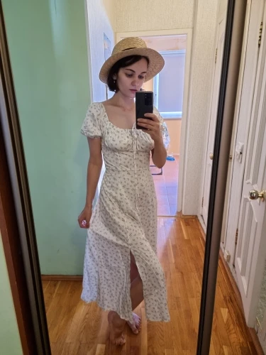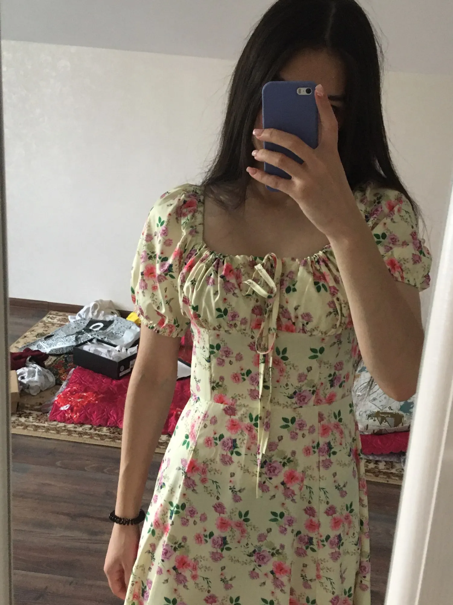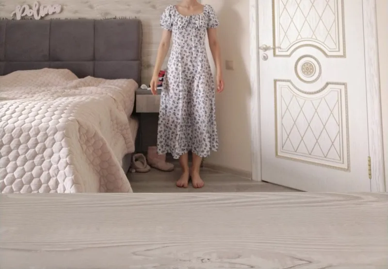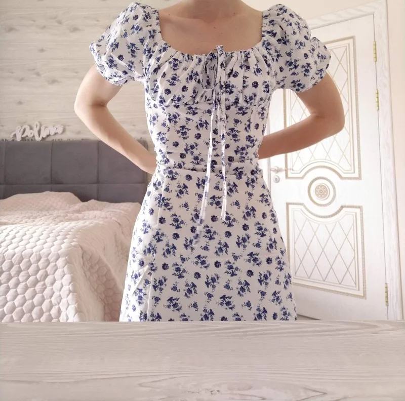 Моя необдуманная покупка. Оплатила сразу как увидела. Размер S отлично сел на меня, все в этом плане хорошо, но я честно ожидала большего почему-то. Ткань такую летом не ношу, в полиэстере оч жарко будет. Потом я пригляделась и платье напомнило мне ночнушку, а узором старомодный пододеяльник.( все таки на грудь побольше сидеть будет симпатичнее - как мне кажется(!). Все таки надо было внимательнее смотреть фото отзывов и читать состав ткани )) ну ничего, вроде носить можно, но не уверена, что буду часто.
