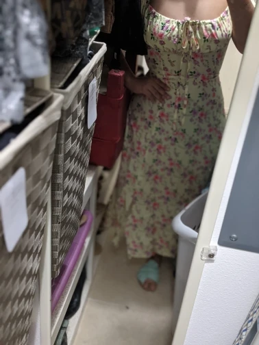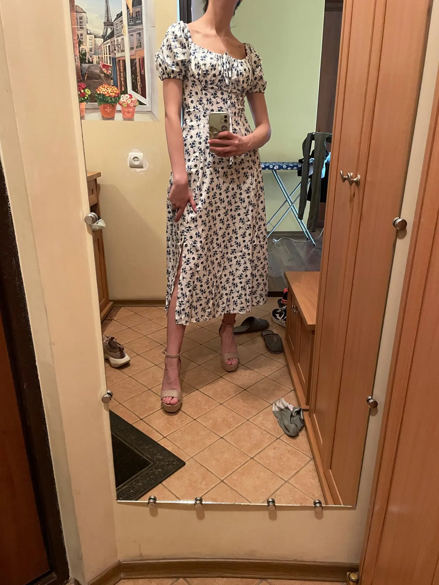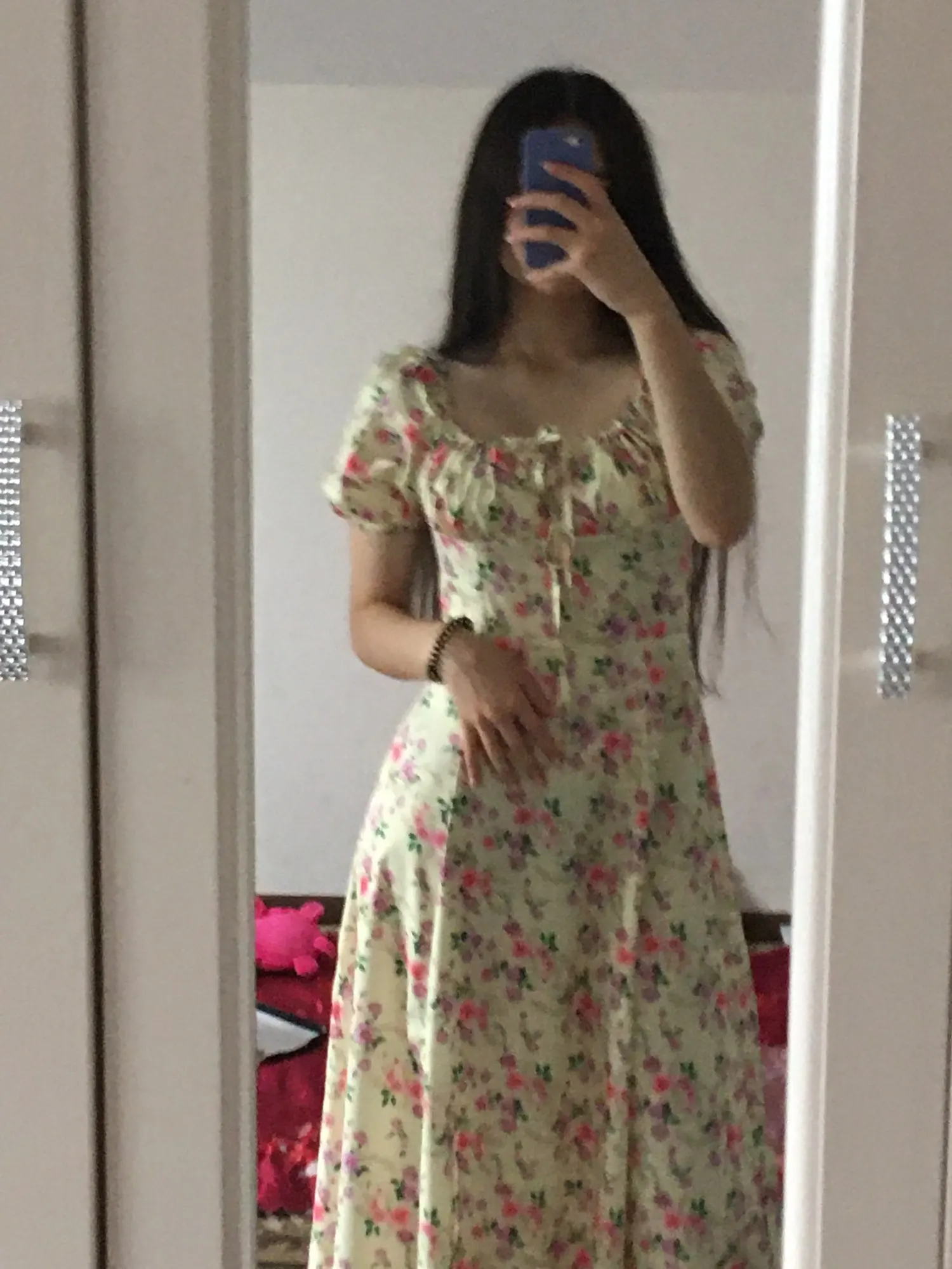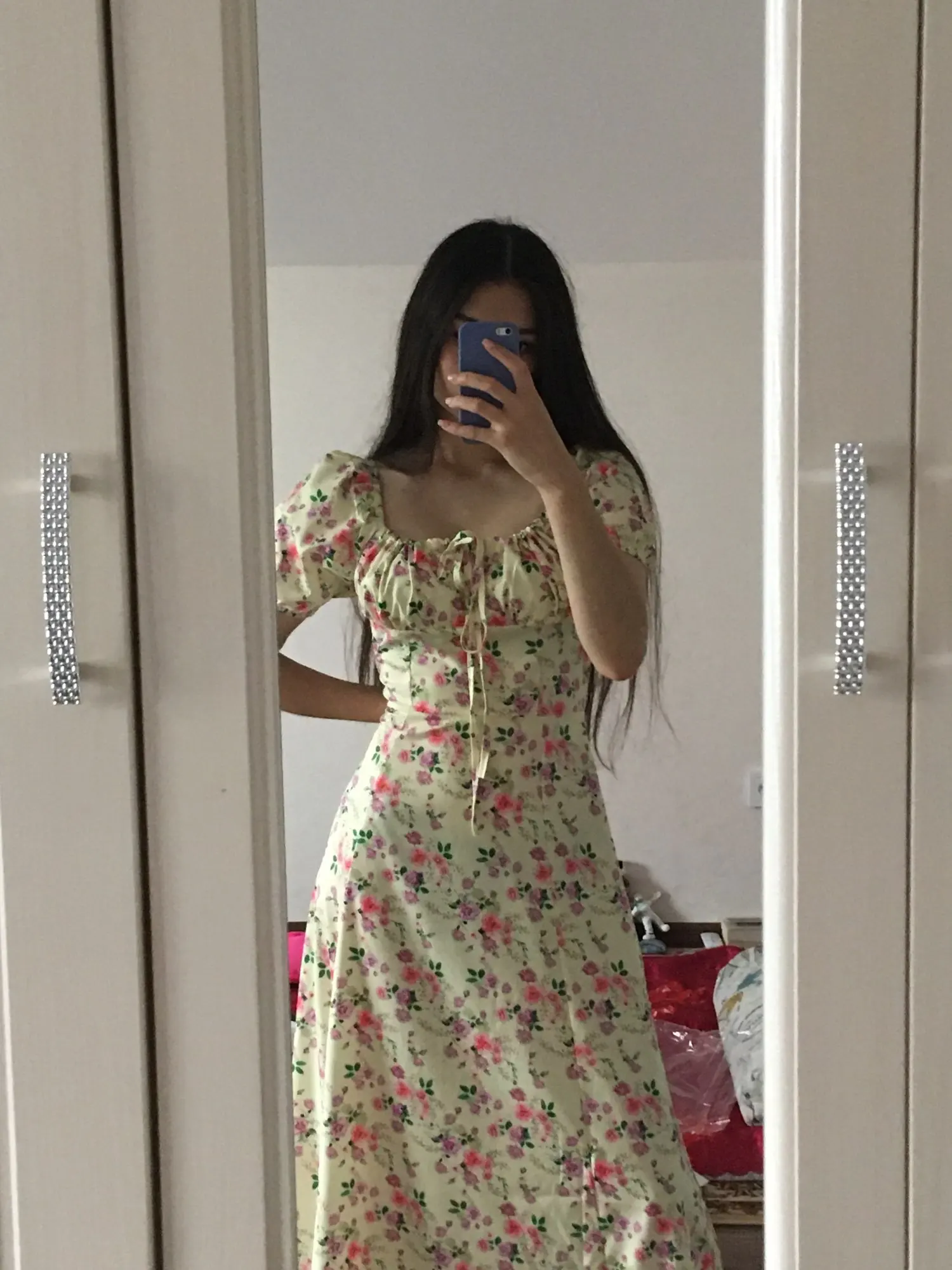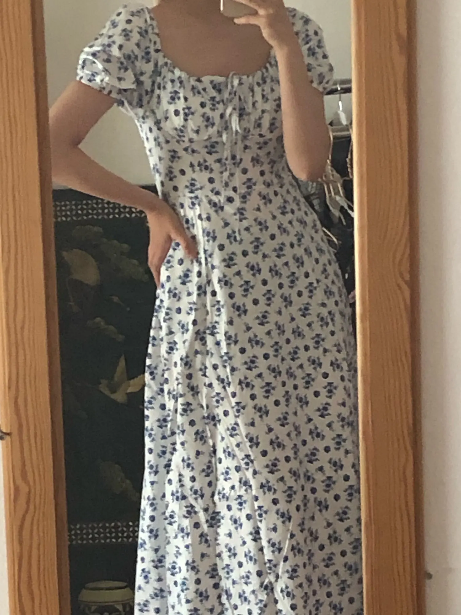 Моя необдуманная покупка. Оплатила сразу как увидела. Размер S отлично сел на меня, все в этом плане хорошо, но я честно ожидала большего почему-то. Ткань такую летом не ношу, в полиэстере оч жарко будет. Потом я пригляделась и платье напомнило мне ночнушку, а узором старомодный пододеяльник.( все таки на грудь побольше сидеть будет симпатичнее - как мне кажется(!). Все таки надо было внимательнее смотреть фото отзывов и читать состав ткани )) ну ничего, вроде носить можно, но не уверена, что буду часто.