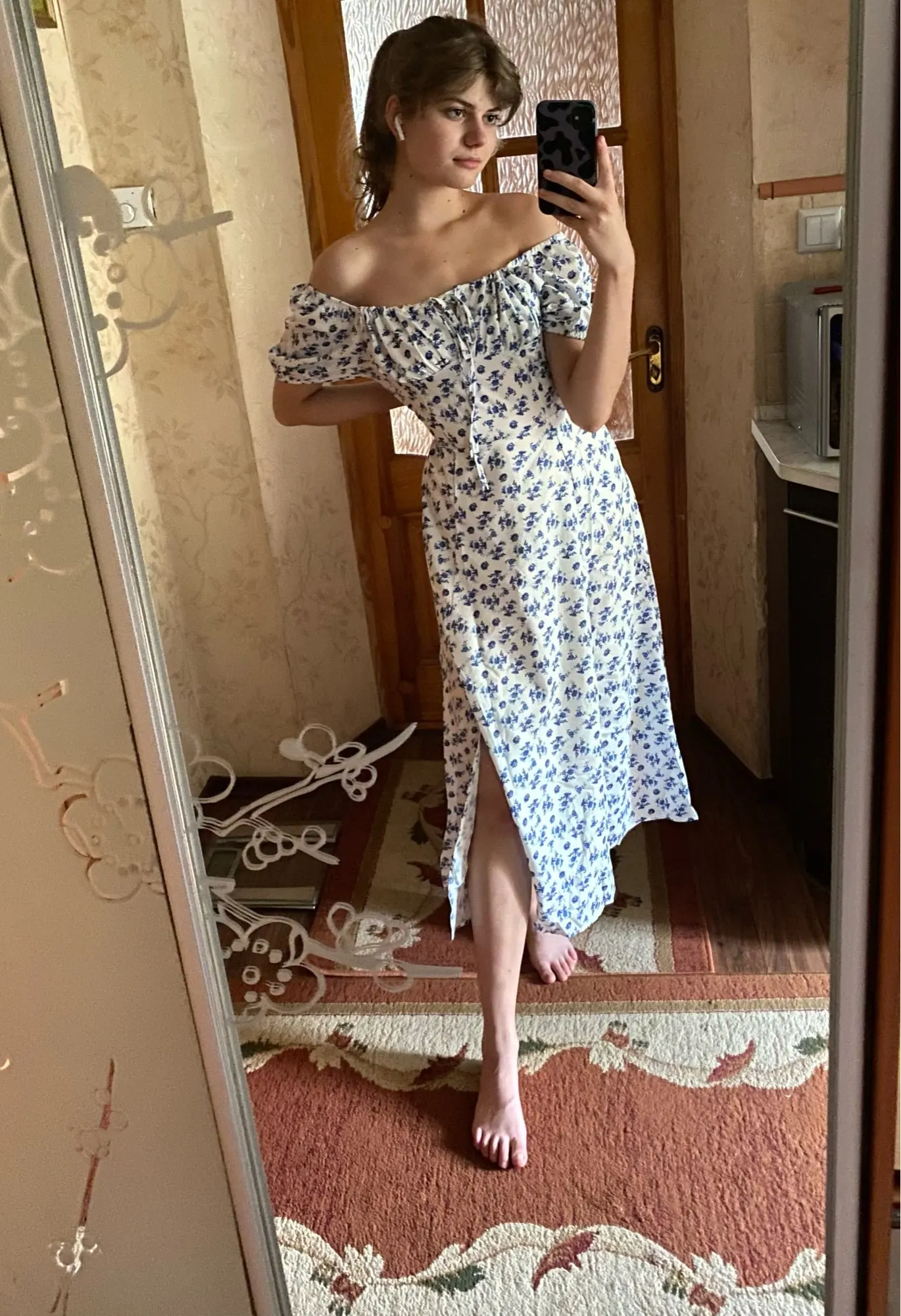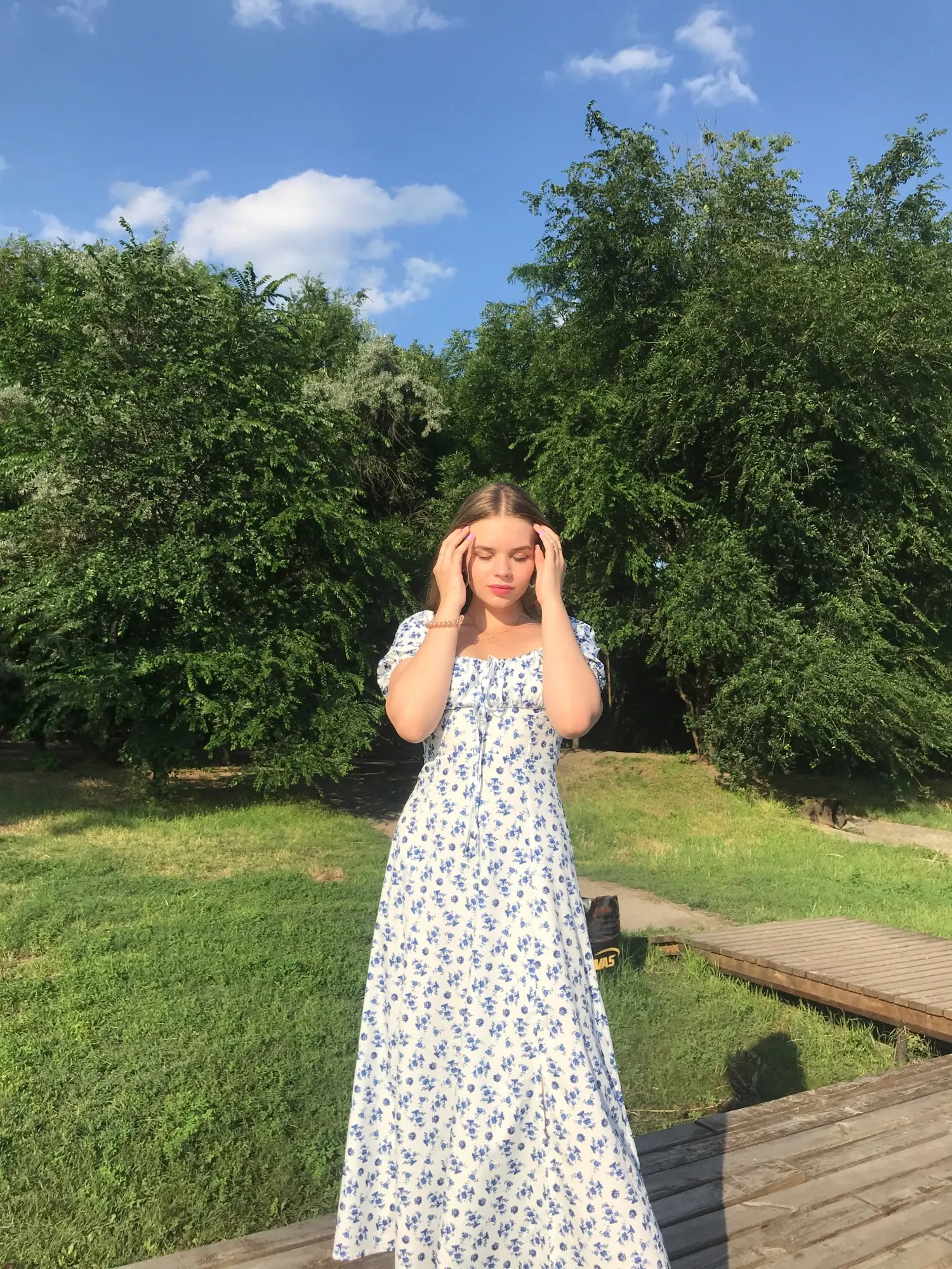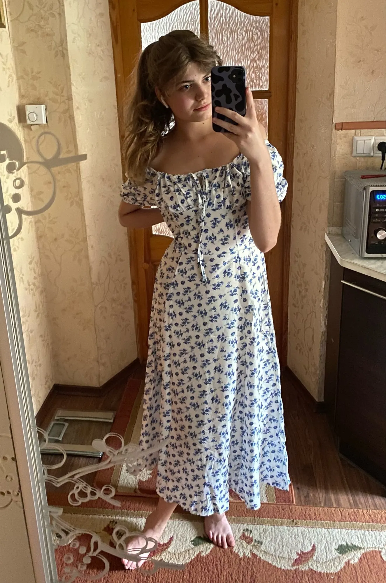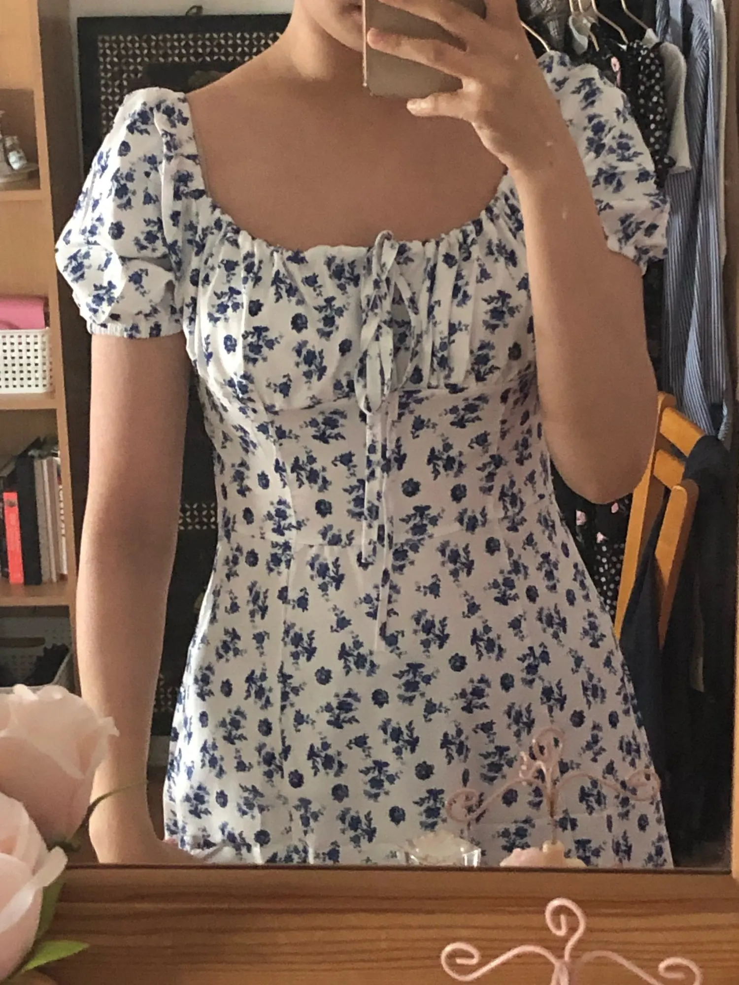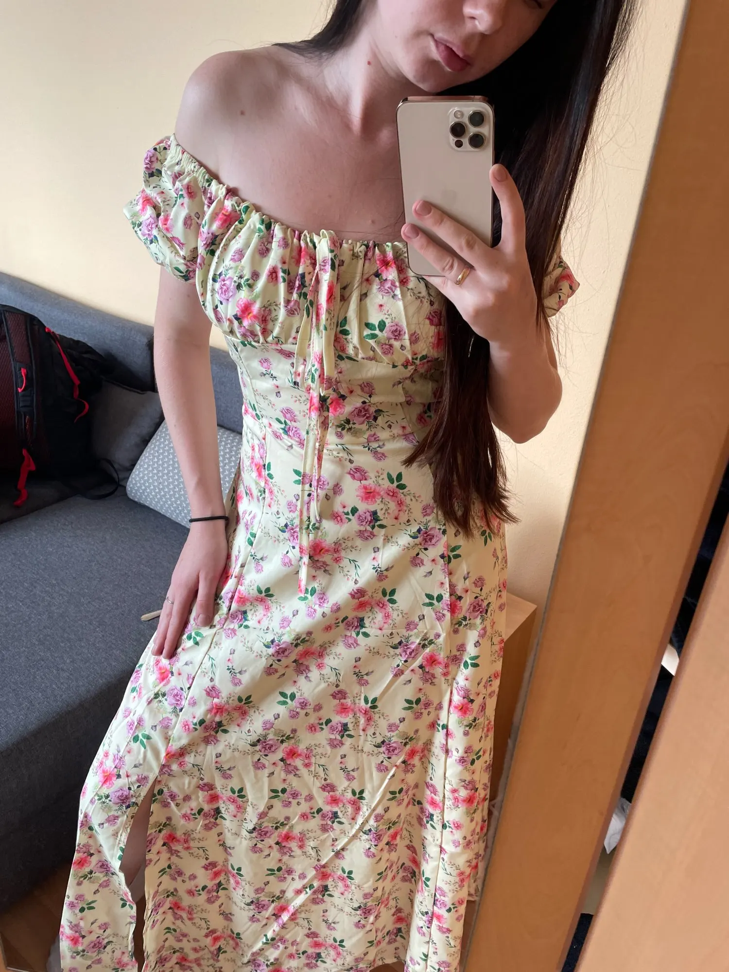 Моя необдуманная покупка. Оплатила сразу как увидела. Размер S отлично сел на меня, все в этом плане хорошо, но я честно ожидала большего почему-то. Ткань такую летом не ношу, в полиэстере оч жарко будет. Потом я пригляделась и платье напомнило мне ночнушку, а узором старомодный пододеяльник.( все таки на грудь побольше сидеть будет симпатичнее - как мне кажется(!). Все таки надо было внимательнее смотреть фото отзывов и читать состав ткани )) ну ничего, вроде носить можно, но не уверена, что буду часто.