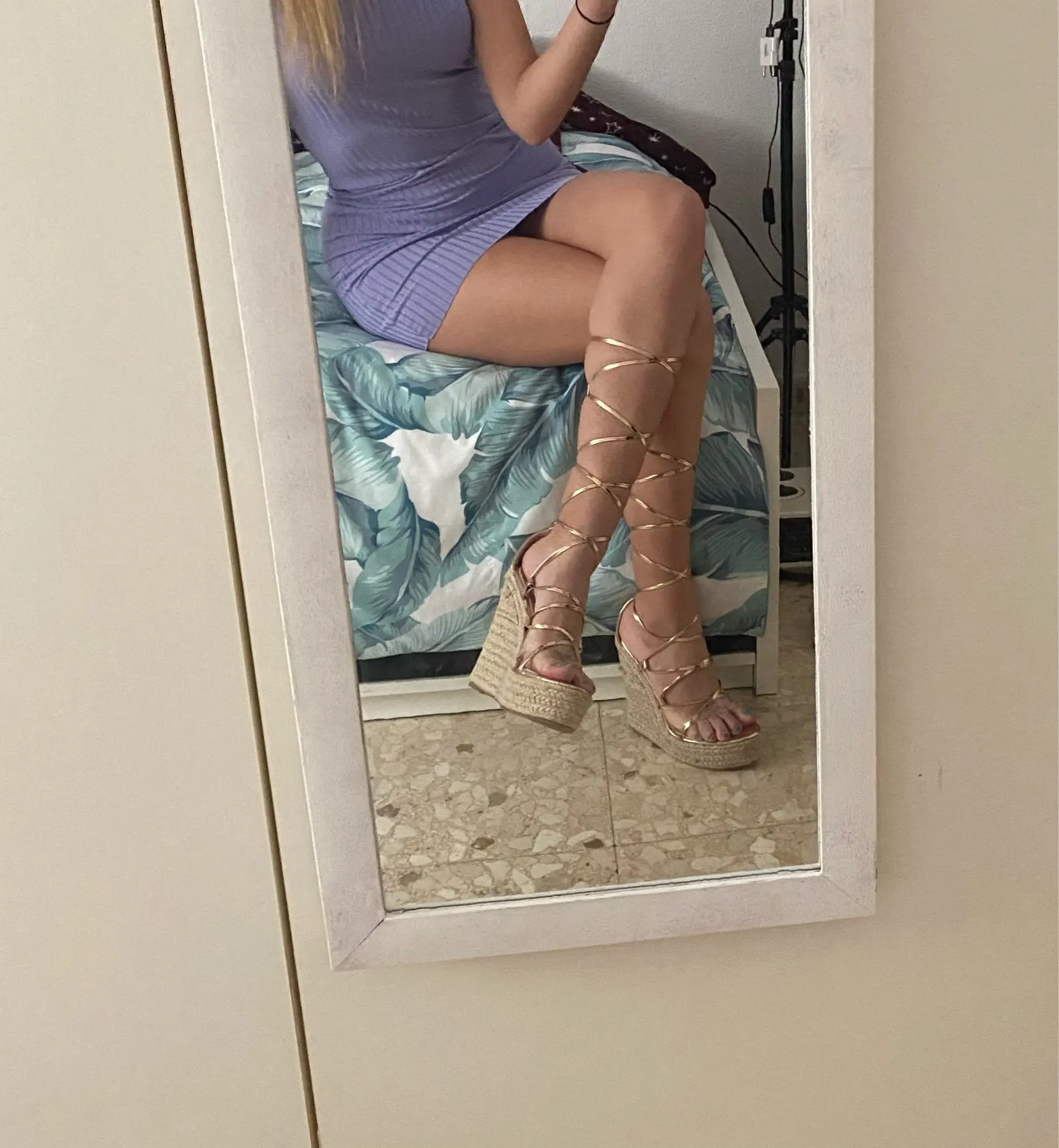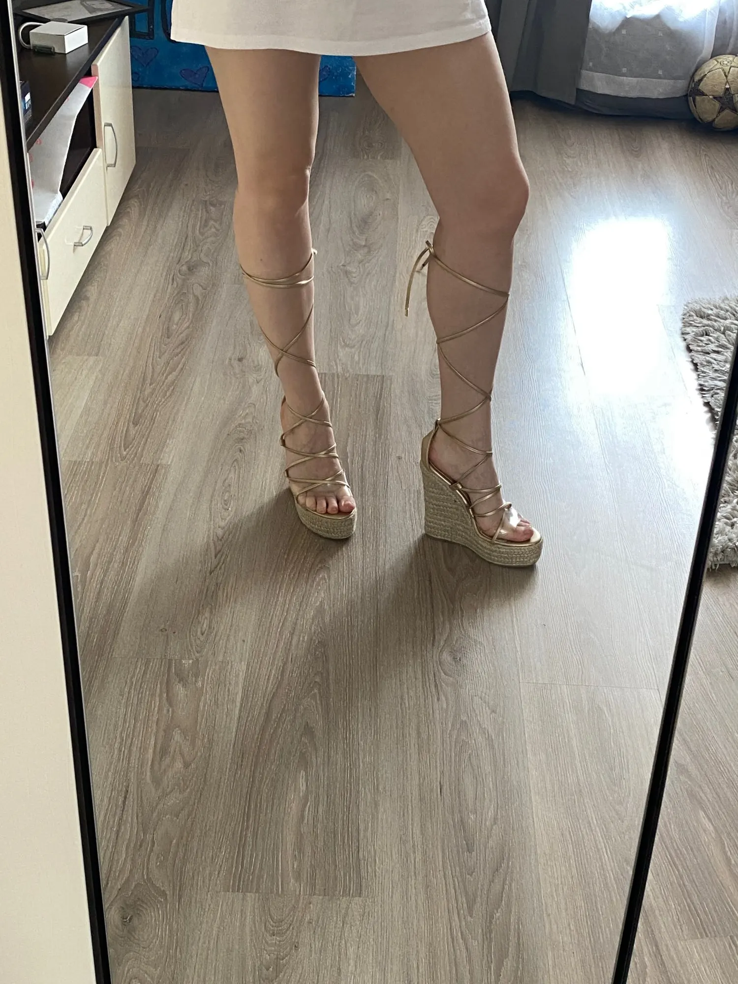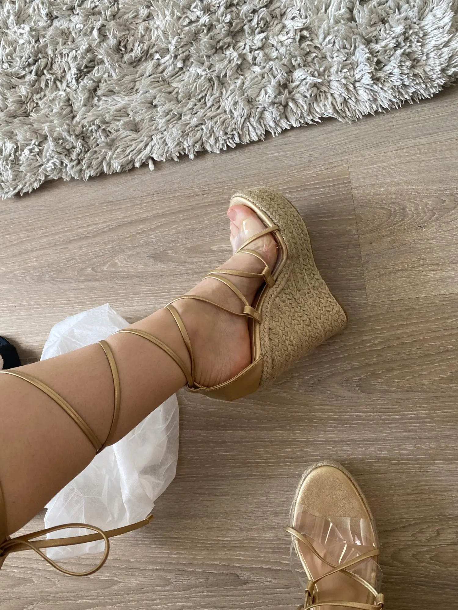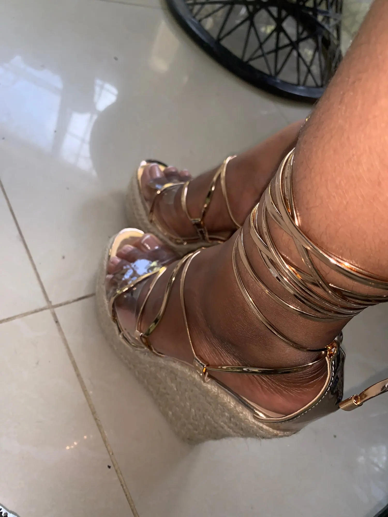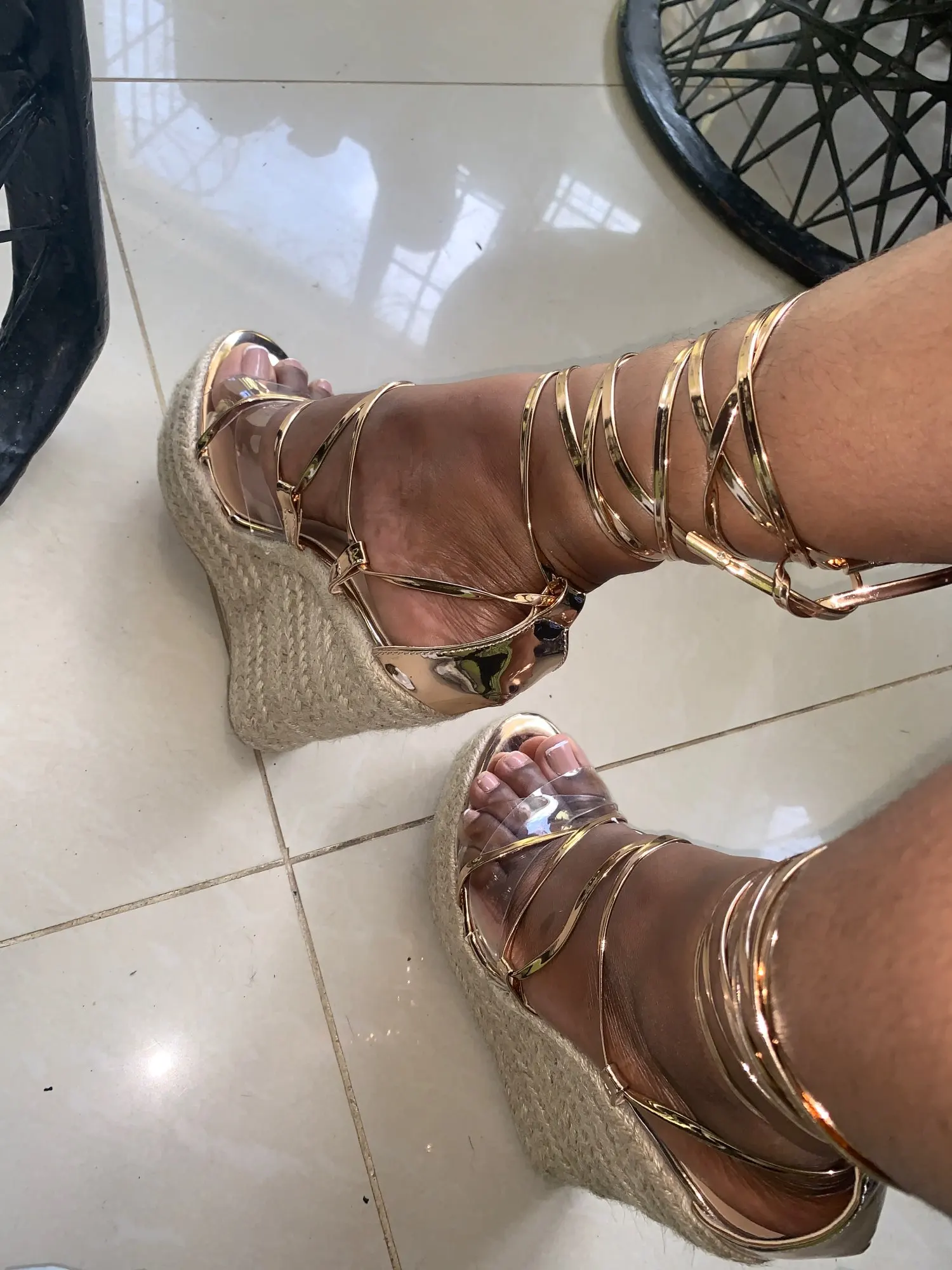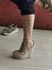 5 days delivery!!!!!!! And the order was issued on Sunday! Mega fast! Super cool sandals. There are of course minusiki (slightly crooked in some places) but this is if you look after it. And on the leg super! High, it seems convenient to walk around the apartment. But we have to try it on the street. Chose the size of 36-5-on the foot 22,8-23 cm. Came up. Thank you to the store for sex sandals and super fast delivery!!!❤& Middot;