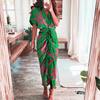 Elegant Vintage Dress Printed Short Sleeve Tie up JKP6164