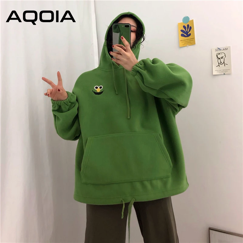 ELMO Embroidery Hoodies Pockets Oversize Sweatshirts