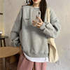 i love the sweatshirt a lot it’s quite thick and hot tho but the material is nice inside the outside material is alright ig not bad. and the embroidery is great i’m about 5’2 and this is how a M fits on me. i didn’t communicate with the store btw