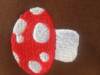 It’s lovely, it’s thick, good quality and an excellent price, the mushroom is embroidered, it’s gorgeous, it is a more light brown/burgundy buts it’s still very nice