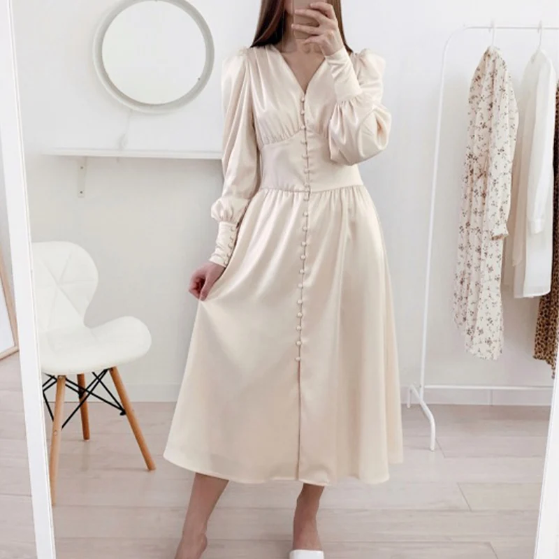 Very beautiful delicate dress. Quality is wonderful. I'll order myself another in black. Performed neatly, the seams are all even, the threads did not stick out. Reference: https://s.click.aliexpress.com/e/_ 9avaio The shade of the dress looks Noble, without cheap shine. The material is heavy, smooth, pleasant to the body and does not electrify. Inside lining. The dress is fastened with small buttons. Cutout V-shaped. Length midi. Sleeves-lanterns keep their shape well. The color does not turn yellow. On me size s. Ideally sat on the figure. My parameters: 83-63-90 cm, height 164 cm. Reference: https://s.click.aliexpress.com/e/_ 9avaio
