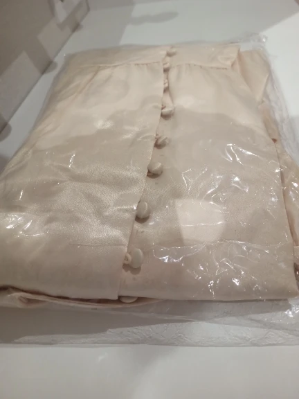 1. my parameters: 90-62-91, height 169. 2. I ordered the size XS. 3. the cut of the dress is a bit strange: in the chest the village, under the breast is tight (I have a volume under the chest 75), and at the waist freely freely I did not like it, because the fabric is stretched between the chest and the waist, and at the waist does not fit at all. 4. the fabric also did not like it very much. At first it seemed that it was very similar to plaschevka, but pleasant to the body. Dress at a temperature of up to 22. This is definitely not satin, rather polyester. 5. the seams are even. In some places, threads stick out. 6. due to the difficult cut, iron it for a very long time. I advise everyone to stock a steamer or at least an iron with a steam supply (I used them). 7. on my growth takes almost to the middle of the calf, but I plan to shorten it. 8. sleeves are long by 5 cm. On 3 photos on the right they are fastened completely, on the left half unbuttoned and reach to the middle of the palm. 9. sent very fast, which I thank! 10. I put 5, but I keep 4 in my mind (because. The price is acceptable, in the store it would be more expensive).