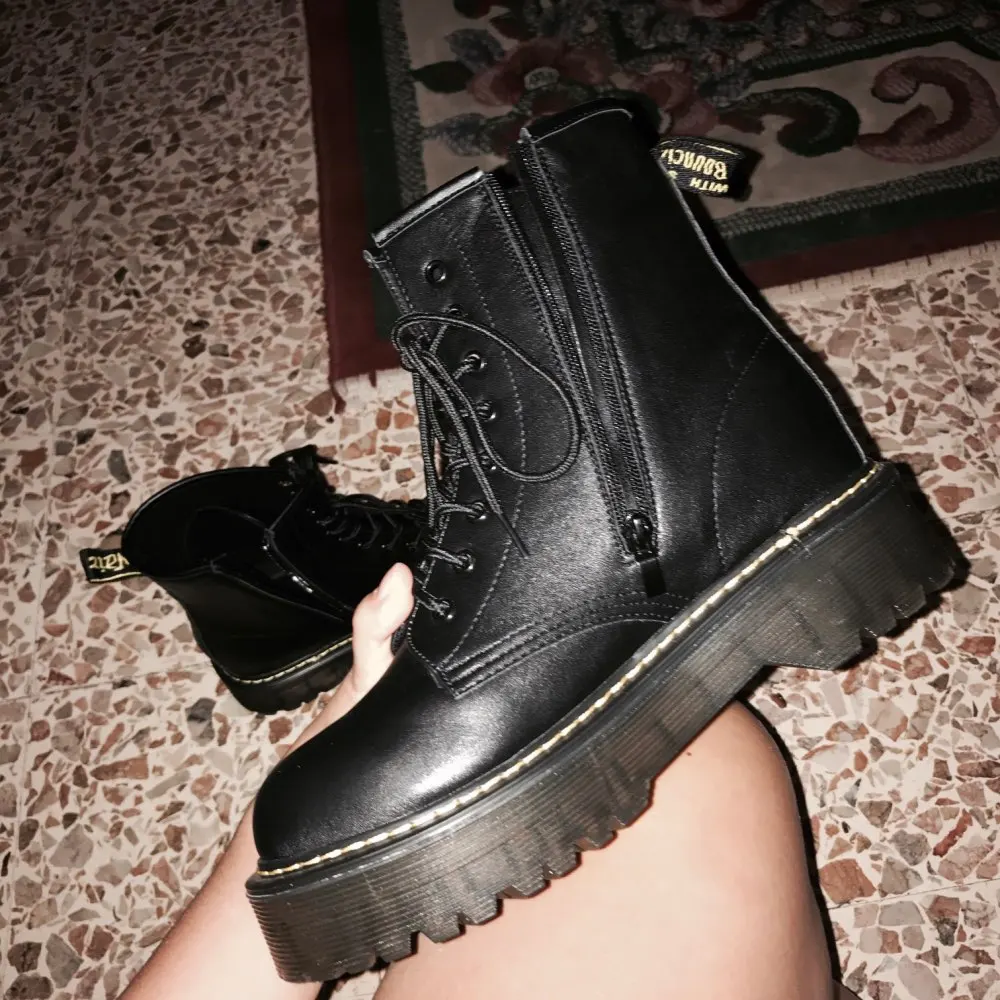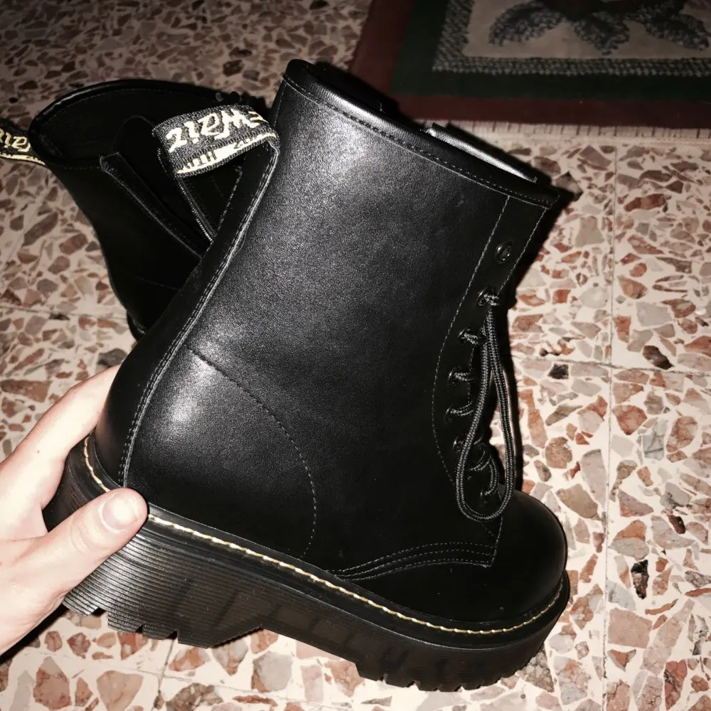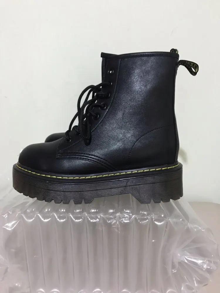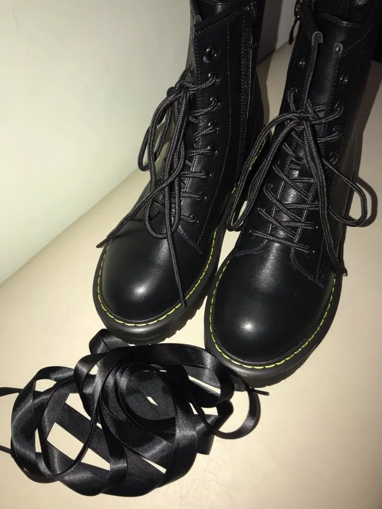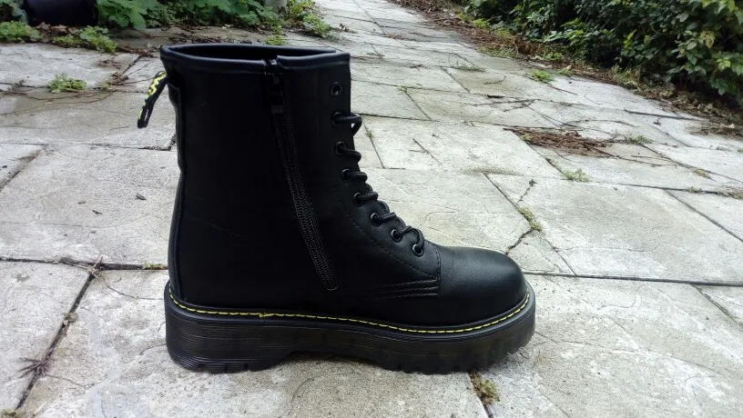 Boots chic! They look great like real dr. martins. Complete with satin laces. A gift-socks was attached. I advise everyone, chic. It was about a month.