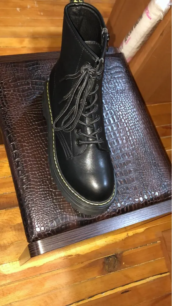 Shoes are very cool! I saw reviews from bloggers who say that the skin is natural, but no, it's artificial leather 100%, but high-quality artificial) by 24,5 cm took 39 rr and was not mistaken) the legs are very comfortable. Shoes do not get wet, shoes are very warm in + 3 even in thin socks. Before recall wore about a week) went weeks 3 about. The seams are all even, there are small creases after a week of socks, but to me the norms) as a gift the store put satin laces and tulle socks with stars of sequins: 3 i will take from this seller more