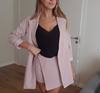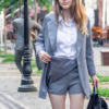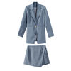 From this store, only cool things came to me both in quality and design. Since i already have a pink suit, i ordered a gray one. The color is interesting, as if a little gives in dusty blue. The costume took in size s on my parameters og 82 cm, from 60 cm, about 89 cm and height 165 cm, the whole village is excellent. The jacket is quite dense and suitable for autumn-spring. Soon i will tell you about another suit and that more summer and light. Fake pockets. There is no tag with the composition. Shorts-skirt in the length of the mini. Spectacular thing. Men are watching. Clasp at the back-a secret zipper in the color of the product. Suit, definitely, # recommend! To the store, too, i advise you to look closely, there are many useful things.