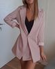 I chose: gray. Size s. The price at the time of purchase: 1619 р. Two-piece suit: an elongated jacket and a short skirt-shorts. Material: coton, polyester, spandex. Thick, good suit fabric in stripes. Turn-down collar, jacket sasteg is on 1 button, i changed it. Shorts are fastened with a zipper. Shorts with a smell. Delivery 2 weeks to russia. Track tracked. Stylish suit, can be worn, with shoes, boots and sneakers. Suitable for any occasion! I recommend to buy and the goods and the store!
