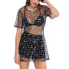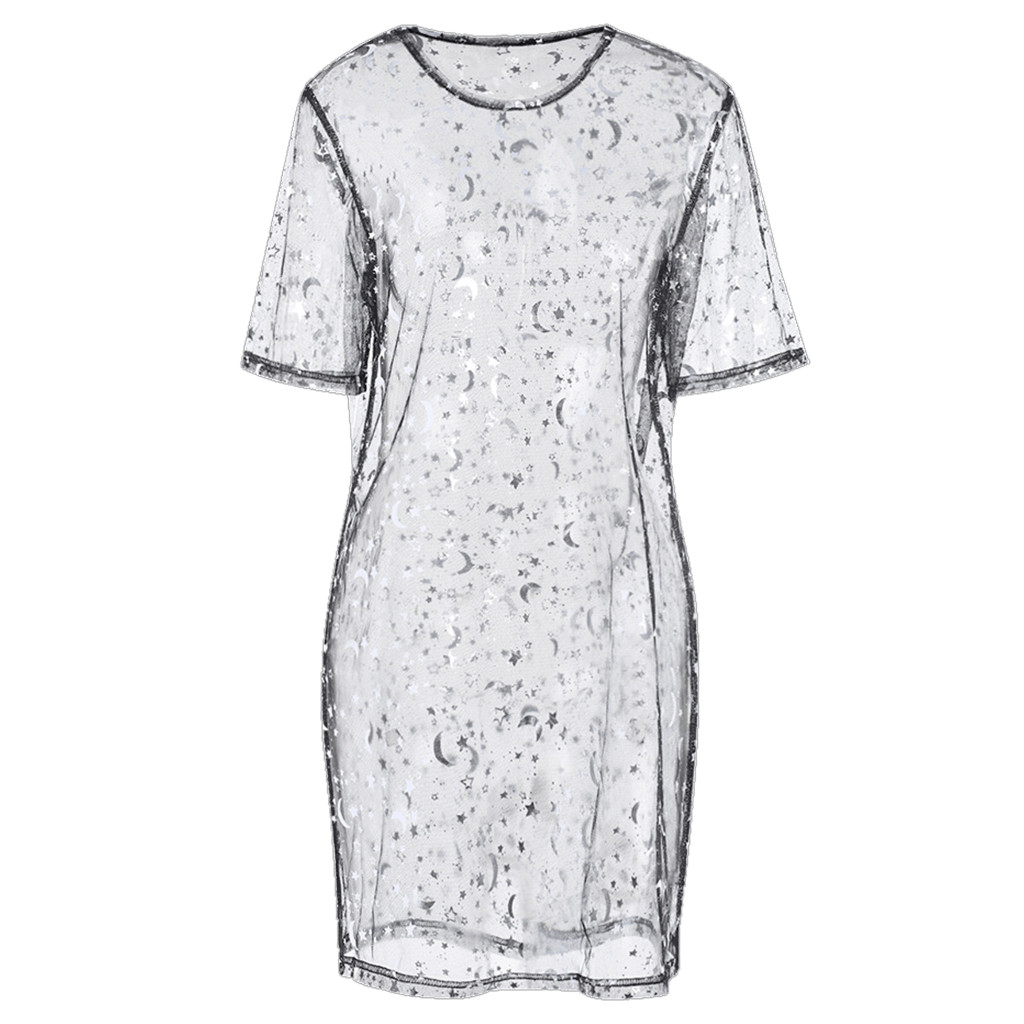 FAST SHIPPING Above Knee Dress Mesh Star And Moon Splicing Perspective Dress Sexy Nightclub Transparent JKP3759