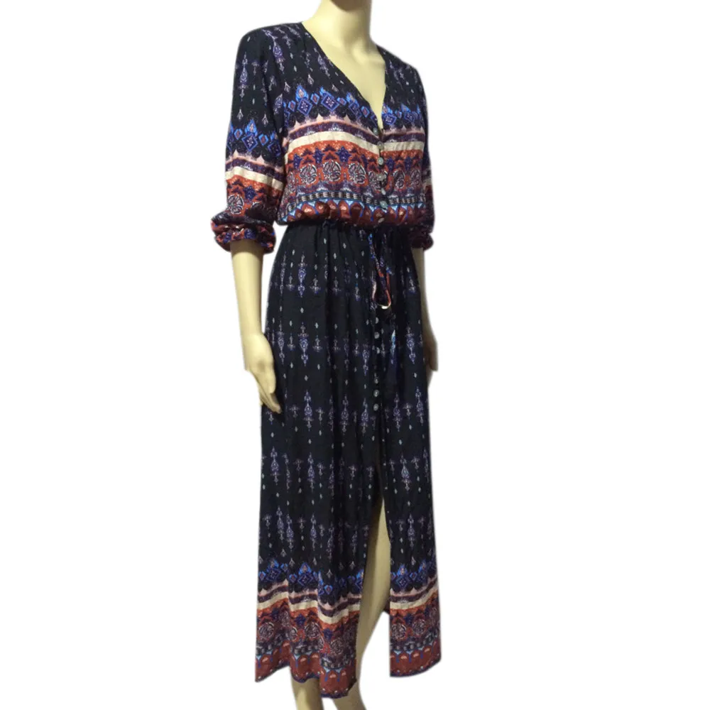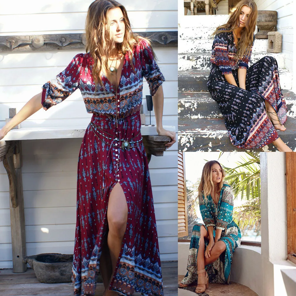 FAST SHIPPING Summer Bohemian Tunic Floral Party Beach Long Maxi Dress Sundress Half Sleeve Spaghetti Strap Long Dress JKP3756