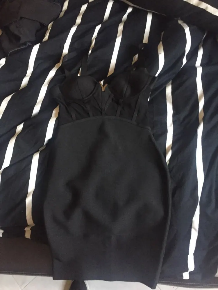 Chic dossier dress!!! XS sat on me as a needle on 85-62-87 height 162 cm. Only the chest would be a little more, and so everything is OK. Stretch fabric, everything is neatly sewn. In it you definitely will not remain unnoticed;) The dress is definitely worth its money!