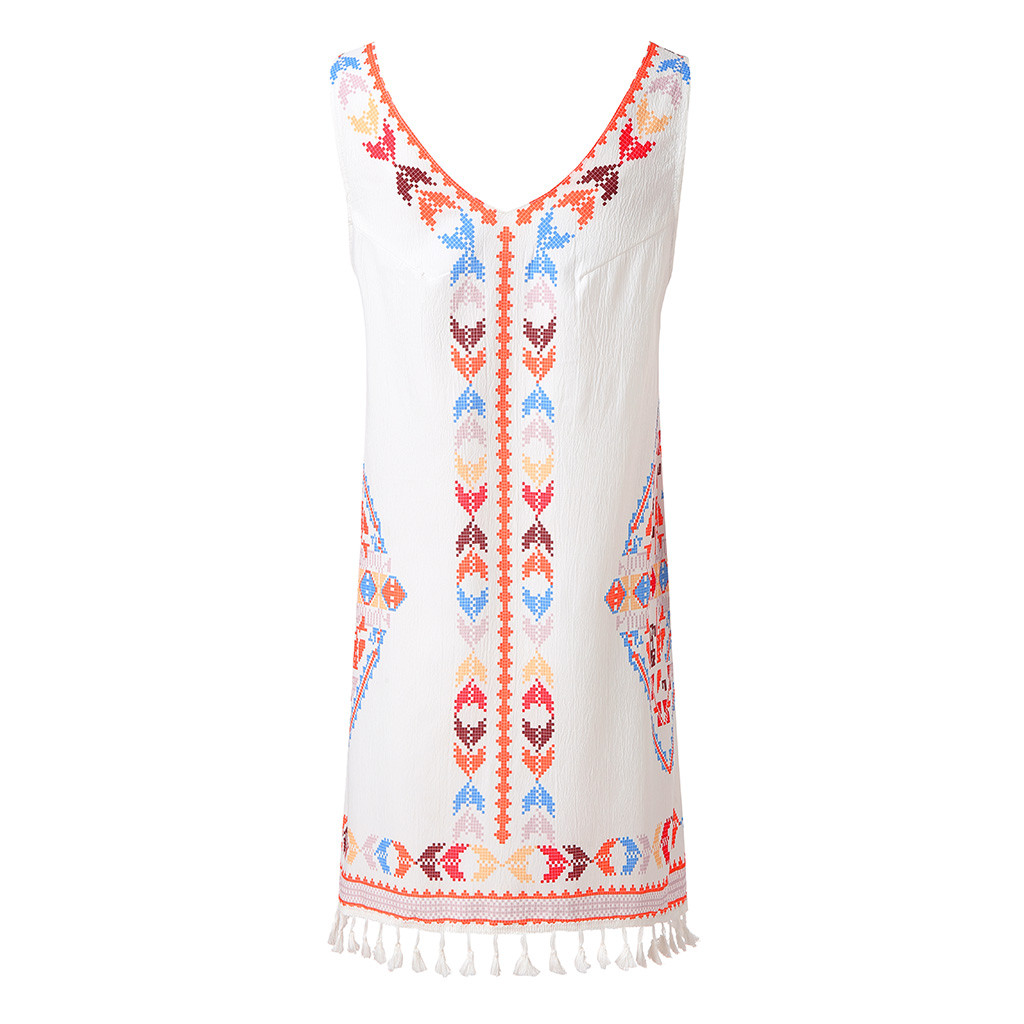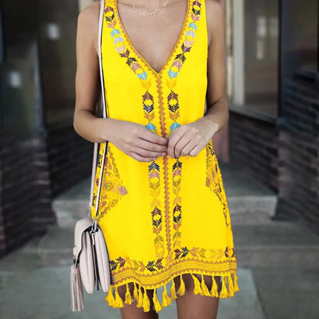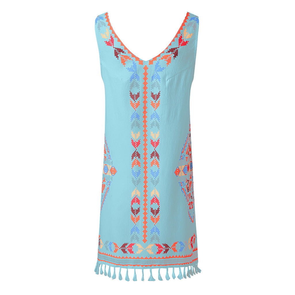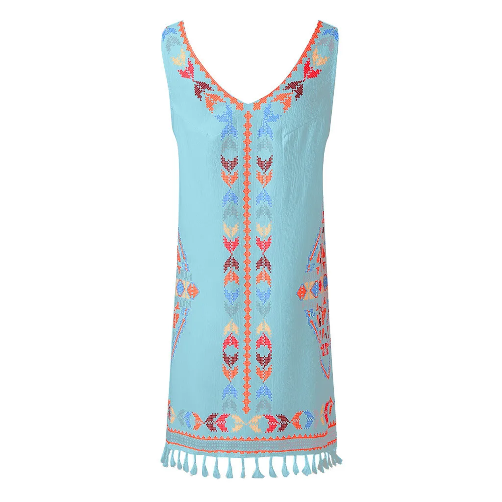 FAST SHIPPING Women Dress Vestidos Verano Summer Bohemia Tassel Casual Print Sleeveless Beach Mini Dress Sundress JKP3757