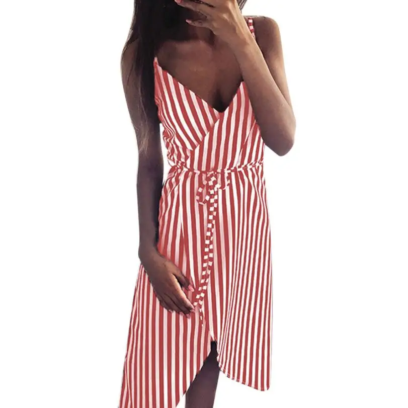 FAST SHIPPING Women Stripe Printing Sleeveless Off Shoulder Dress JKP3761