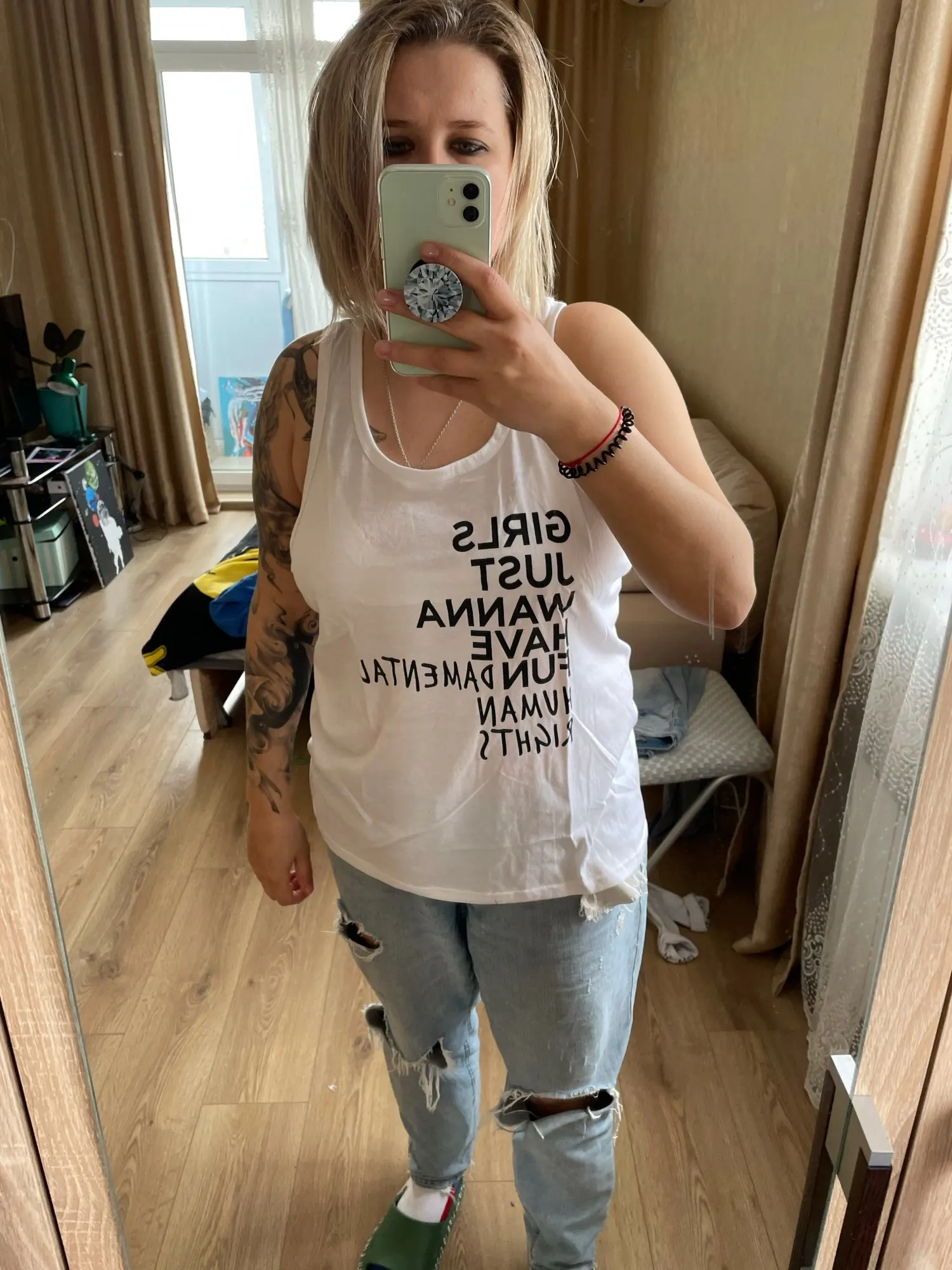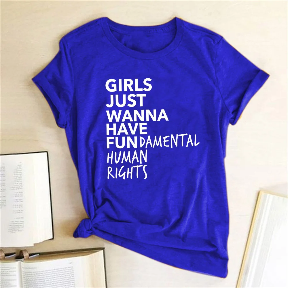 Feminist Feminism Girls T Shirt Just Wanna Have Fundamental Human Rights Letter Print T Shirt