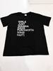 T-shirt is cotton, but the inscription itself is a sticker, so it is unlikely that it will live for a long time