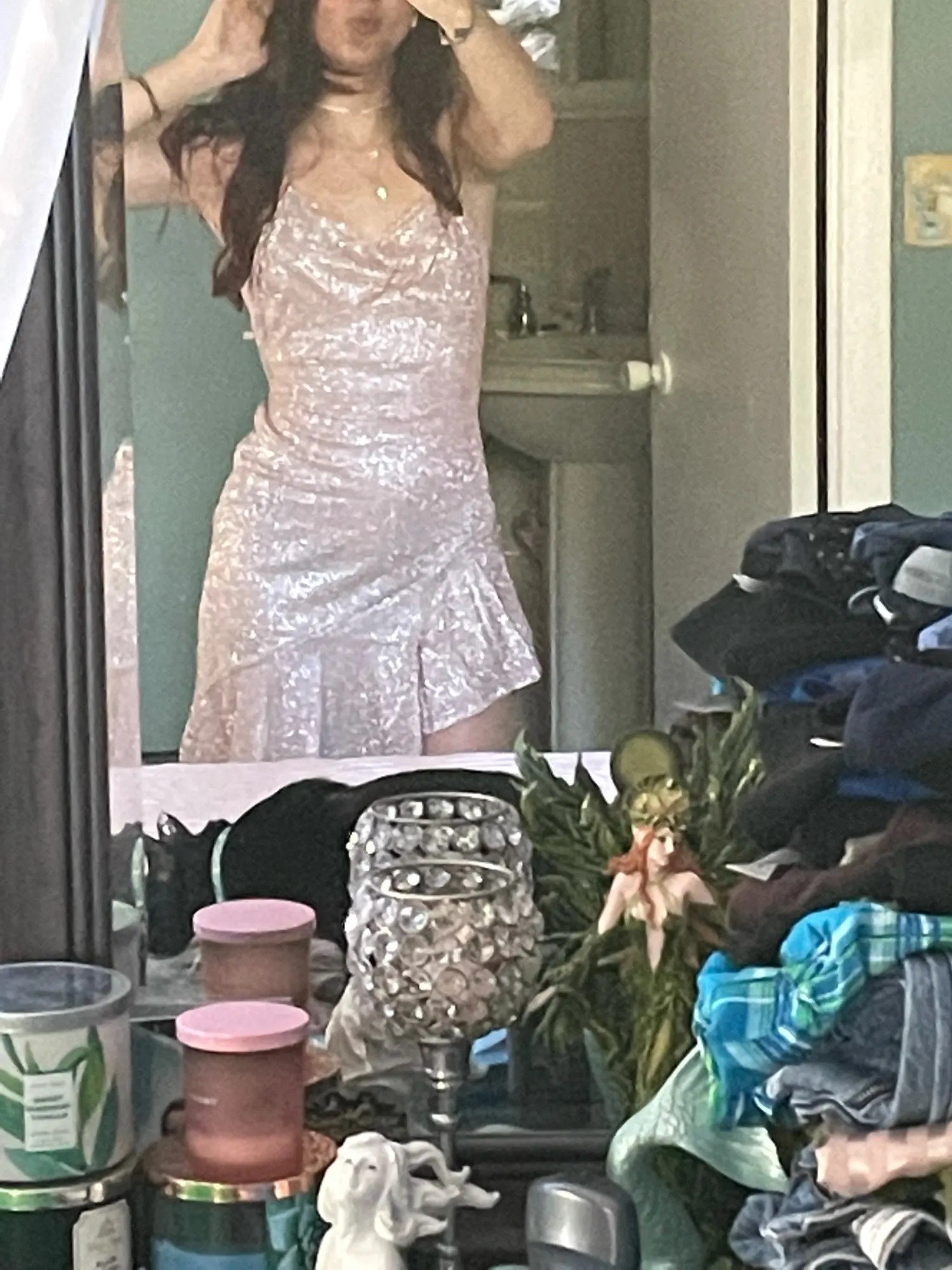 came in a little less than two weeks, kind of see through but a nude bra or underwear is super useful. SUPER SPARKLY, just a beautiful dress in general.