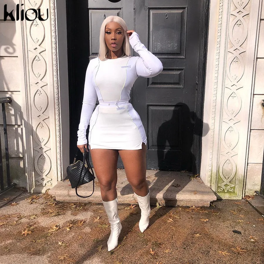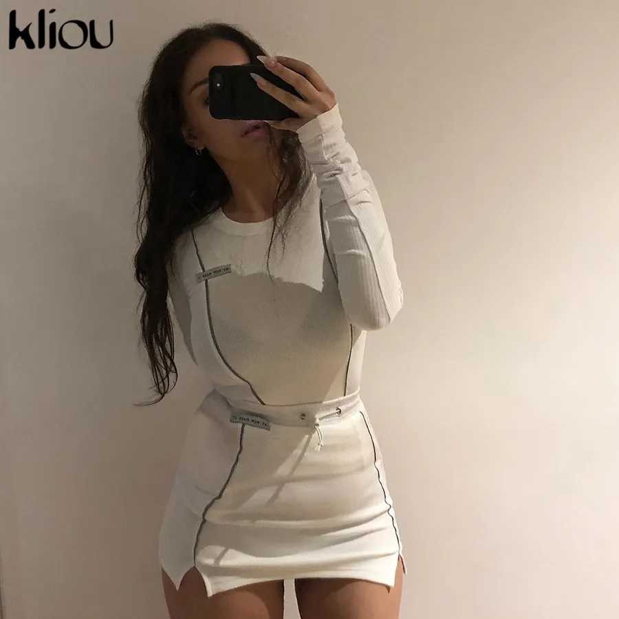 Festival Outfit Fashion White Reflective Striped Patchwork Two Pieces Set JKP3917