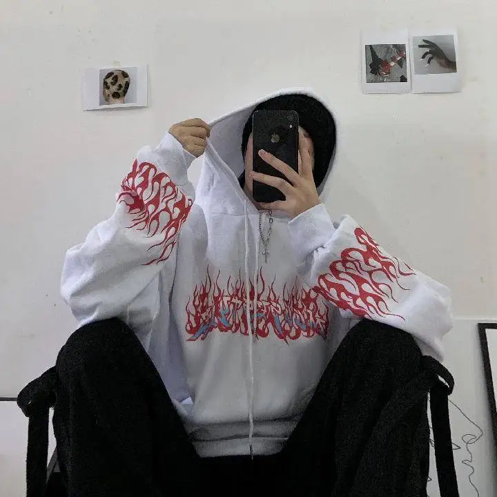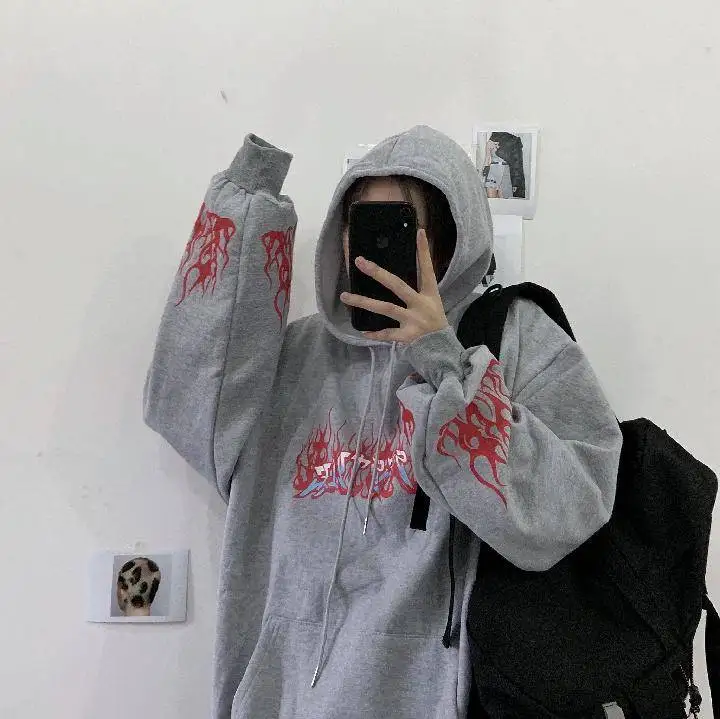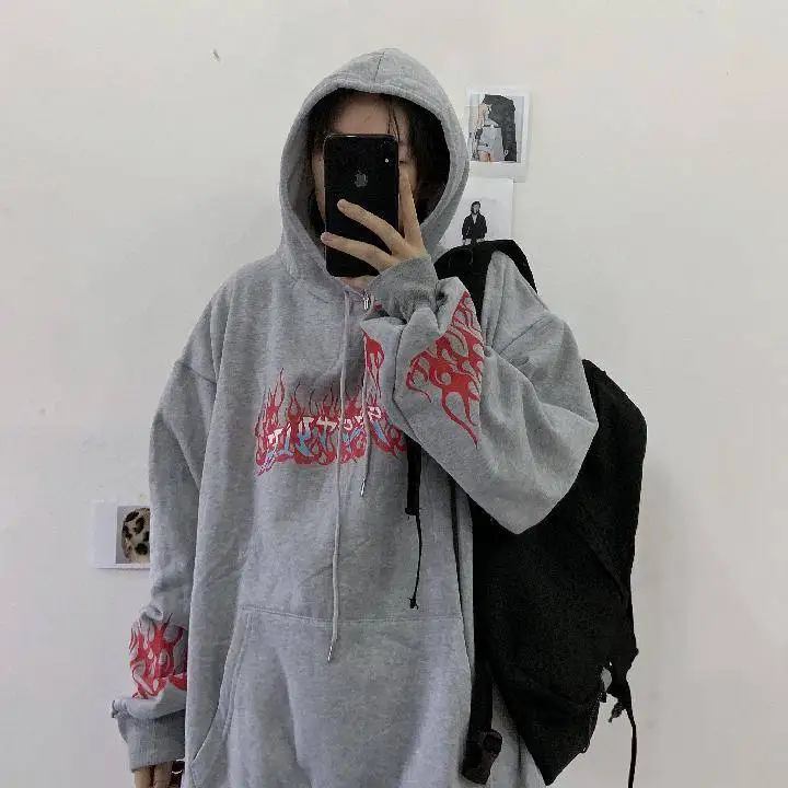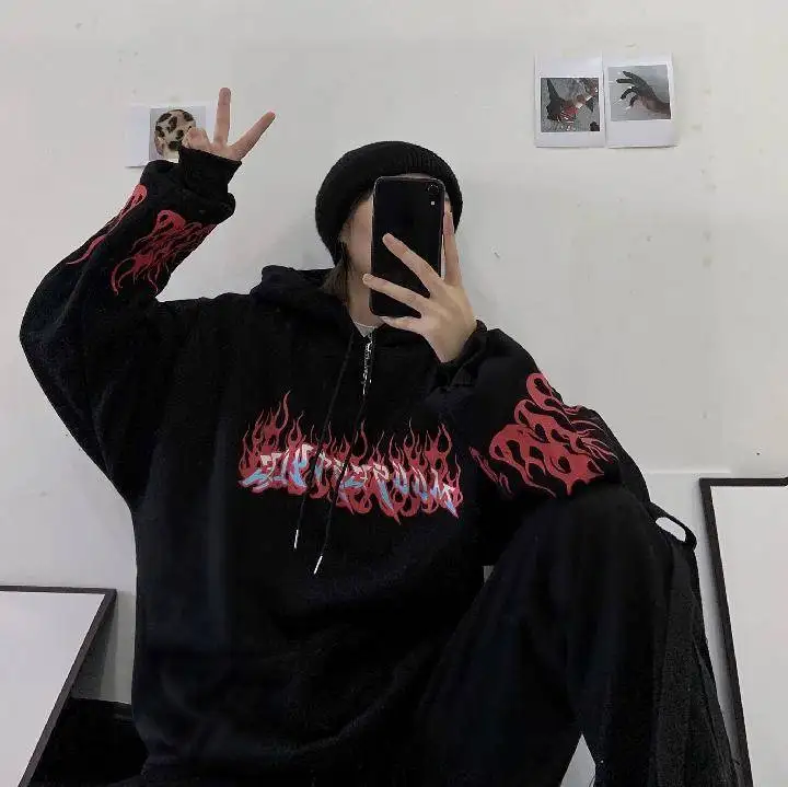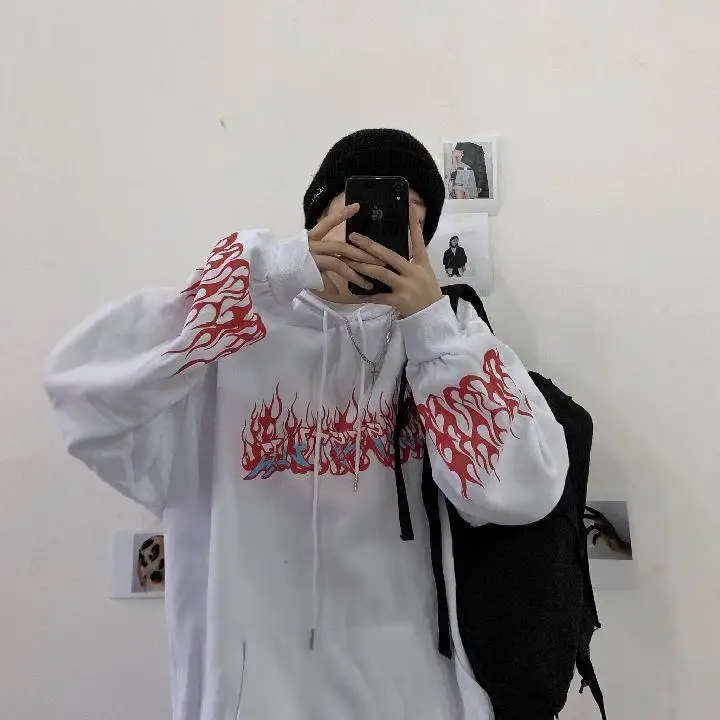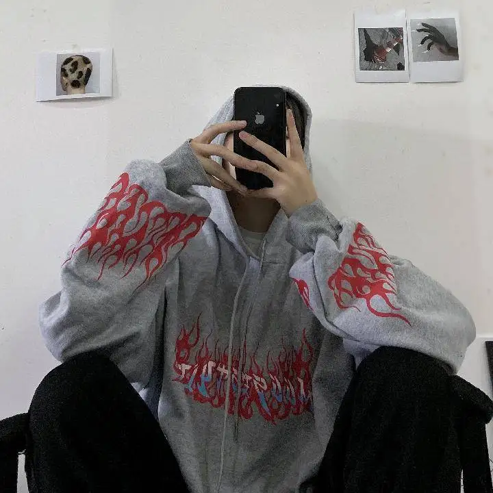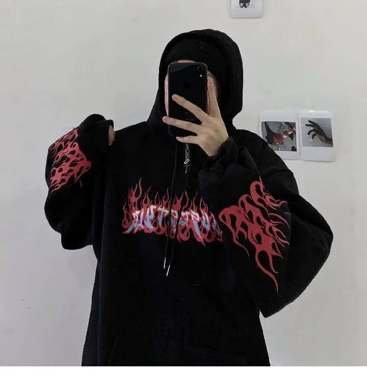 Flaming Fire Print Hoodie Streetwear Casual Hip Hop Pullover Sweatshirts