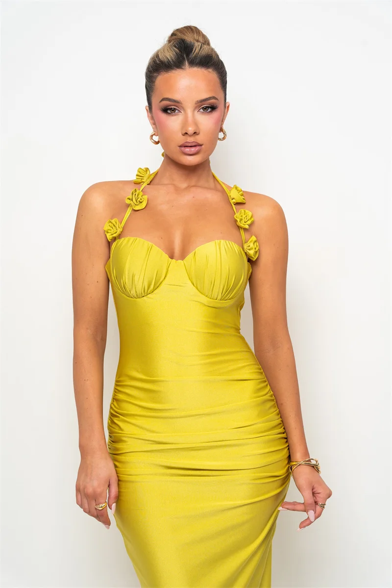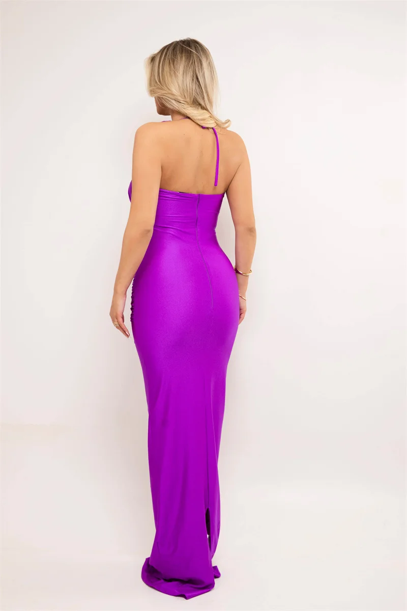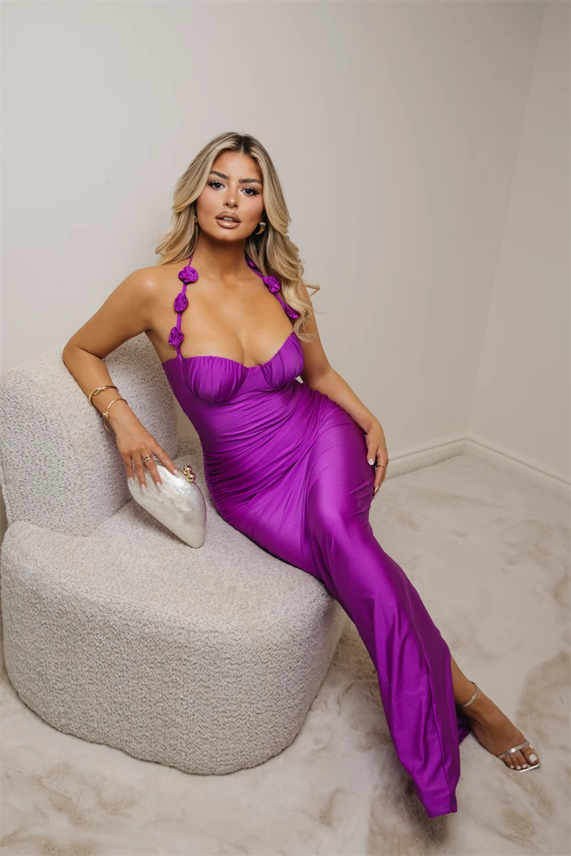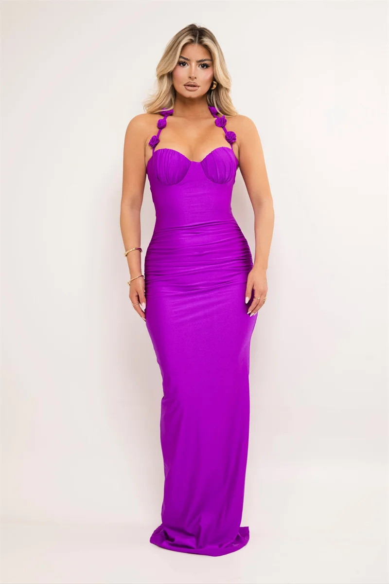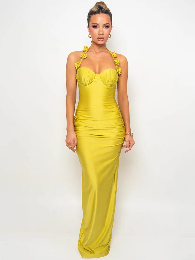 Floral Halter Backless Maxi Dress Sexy Sleeveless Party Gown JKP7307