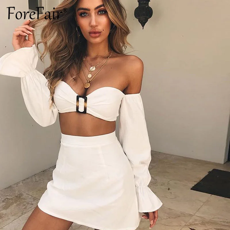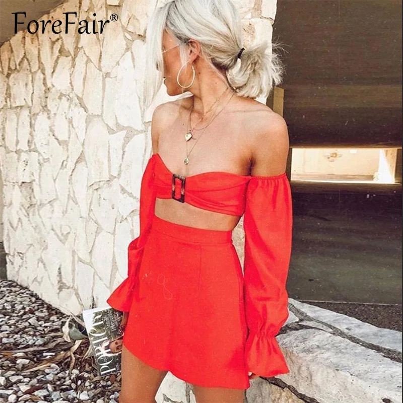 FREE S 2019 Women Crop Top A-line Skirt Suit Twopiece Outfits JKP1375