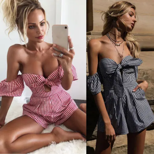 • FREE SHIPING Plaid Off Shoulder Mini Dress JKP1279