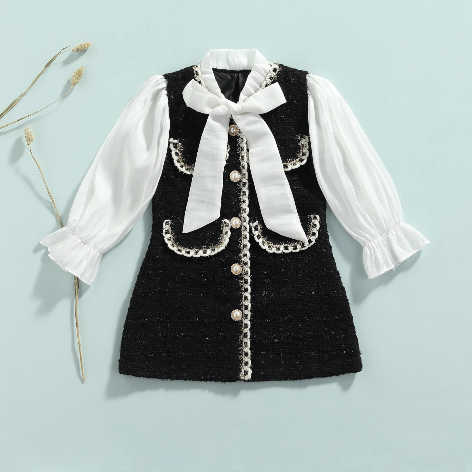 FREE SHIPPING 1 To 6Y Kids Girls Autumn Dress Long Sleeve Pearls Princess Dress Children Clothes JKP6112