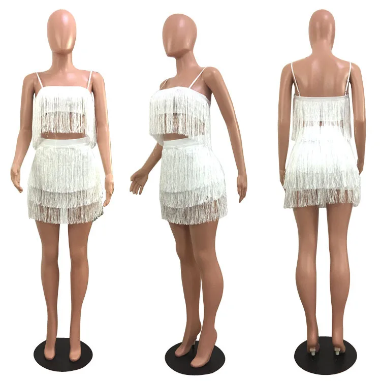 FREE SHIPPING 2 Piece Set Tassel Club Dress JKP719