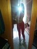 Ce n’est pas rouge foncé c’est un vif mais la taille est parfaite. Pensez à prendre une taille en plus... Je fais du 40-42 j’ai pris L. Le haut est court mais ça passe.