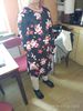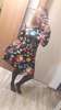 Dress is good, though not as bright as the photo. Size 3XL ~ 48-50, length slightly above 177 knee, long sleeves even me. Fabric soft, no smell.
