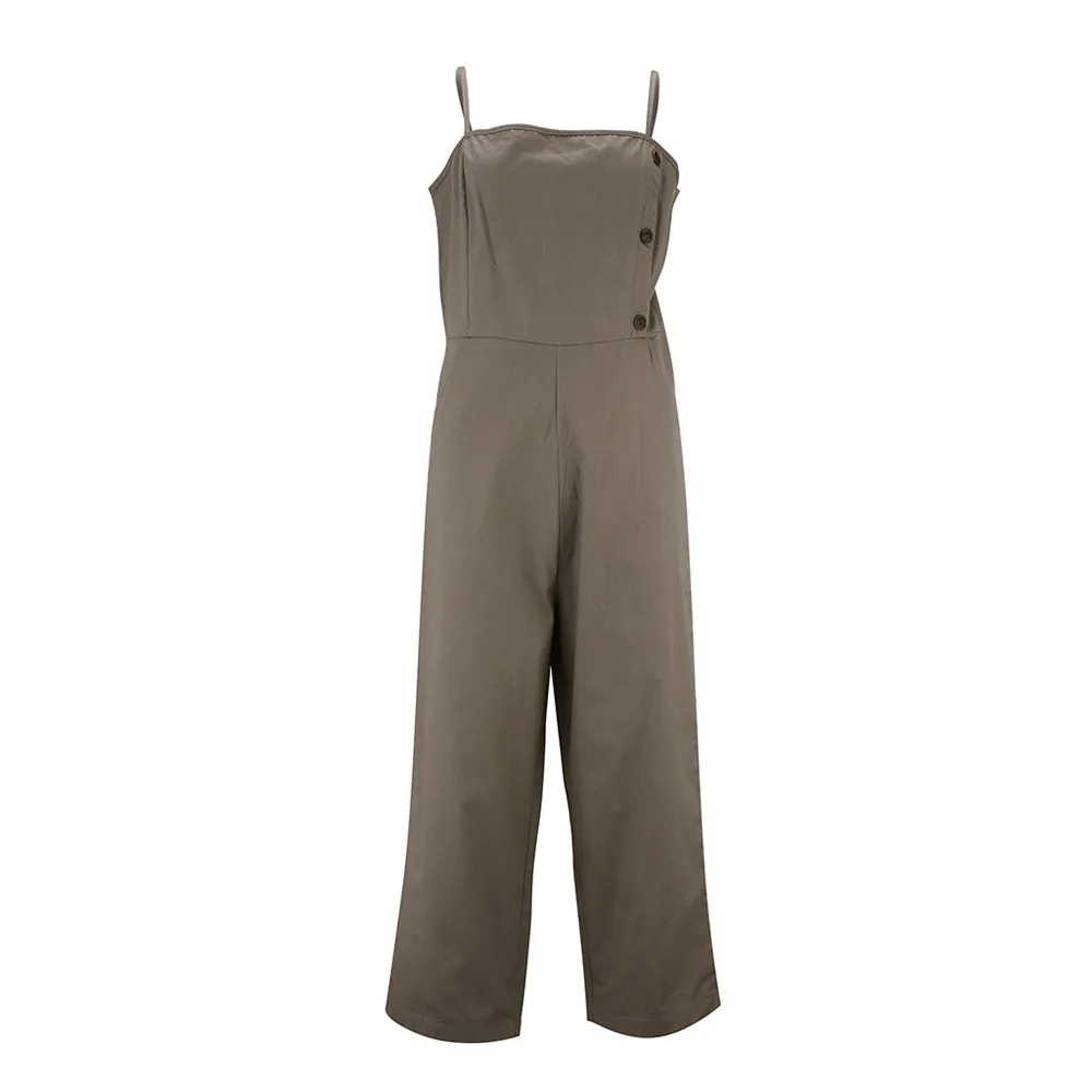 FREE SHIPPING 2018 Button Solid Casual Jumpsuits Dungaree Trousers JKP840
