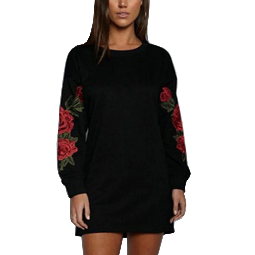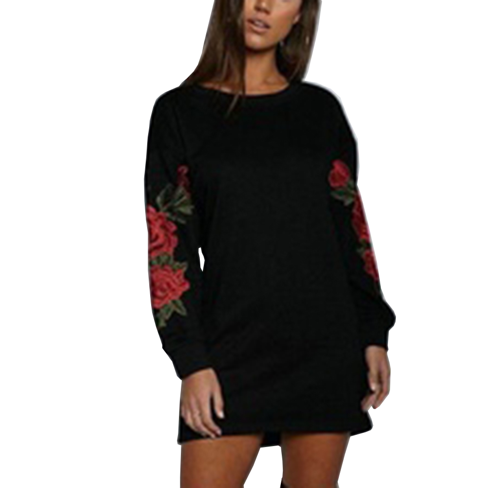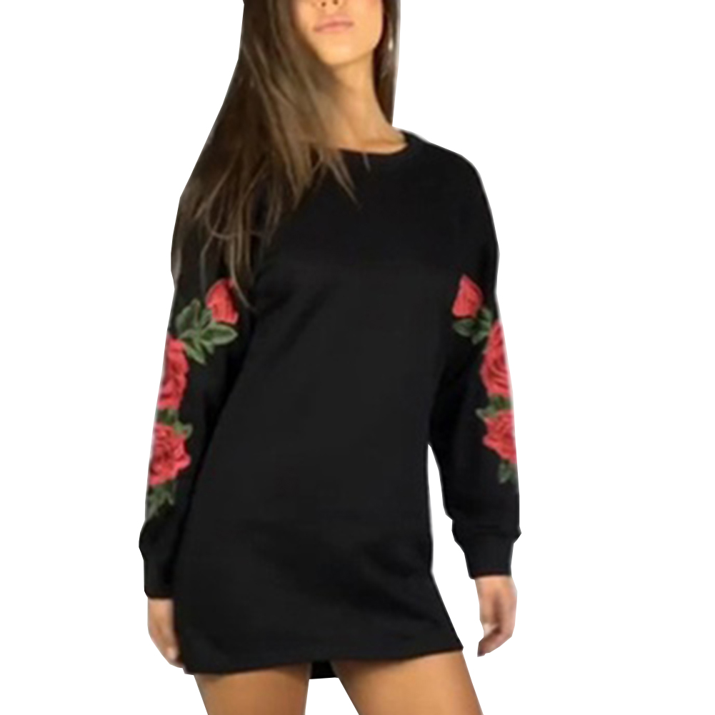 FREE SHIPPING 2018 Embroidered Flower Casual Loose Knitted Dress JKP1228
