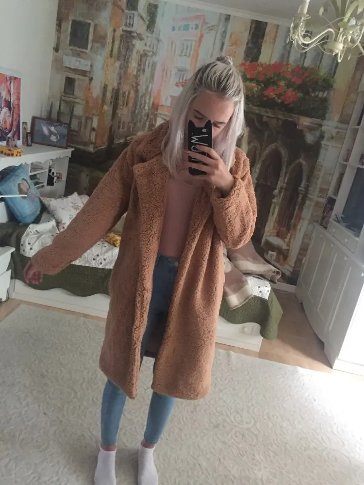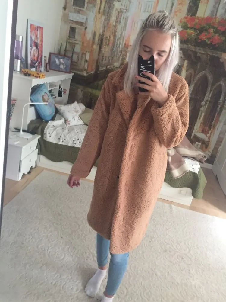 Coat is very cool, mega fast, for 11 days, my options 90-65-100 I ordered size M, it was possible to be smaller, that is S, maybe the coat itself large cut)) Happy, store is responsible for communications fast, high quality coat, very warm because of plush material)))