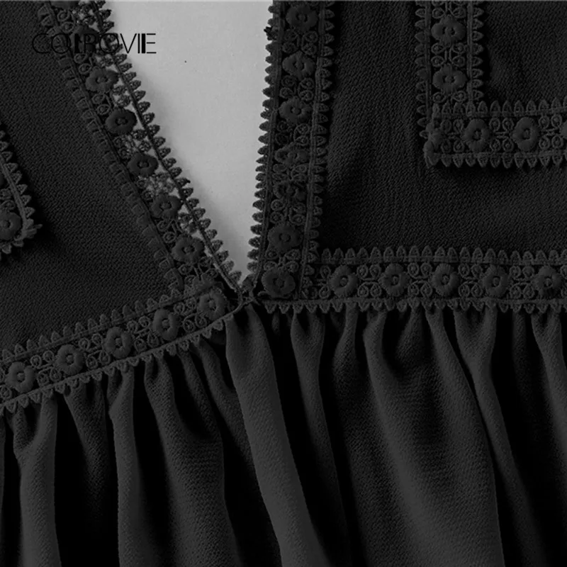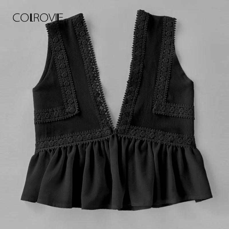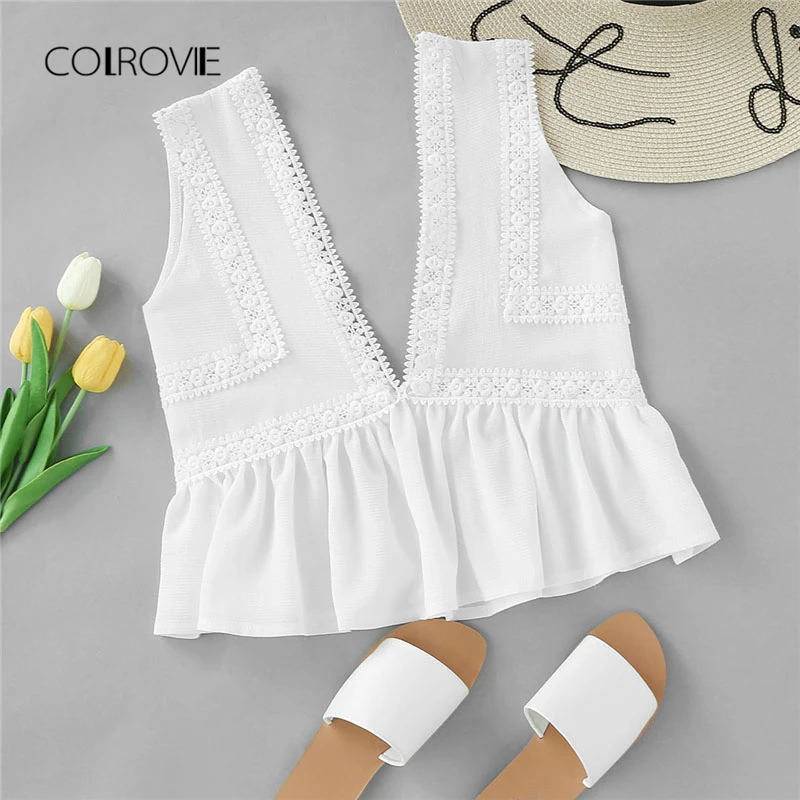 FREE SHIPPING 2018 New White Lace Ruffle Top Deep V Neck JKP1270