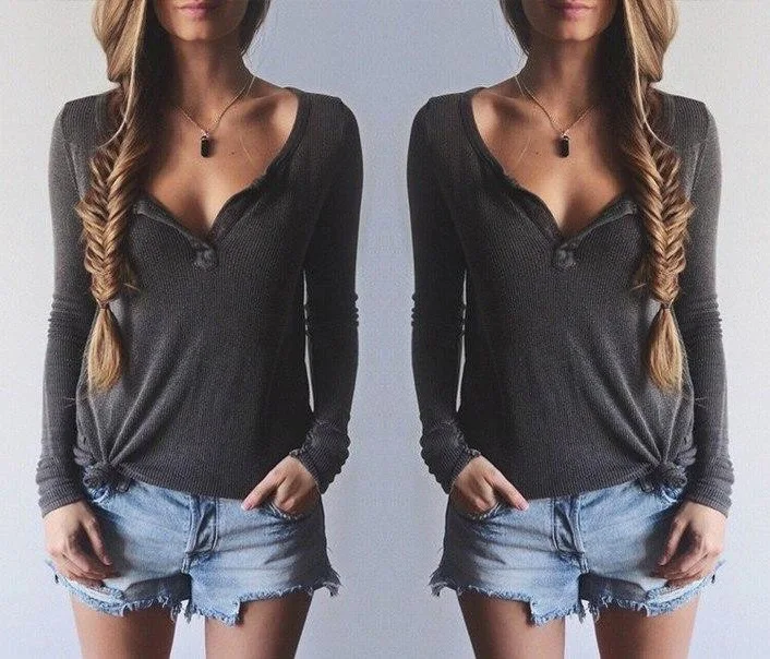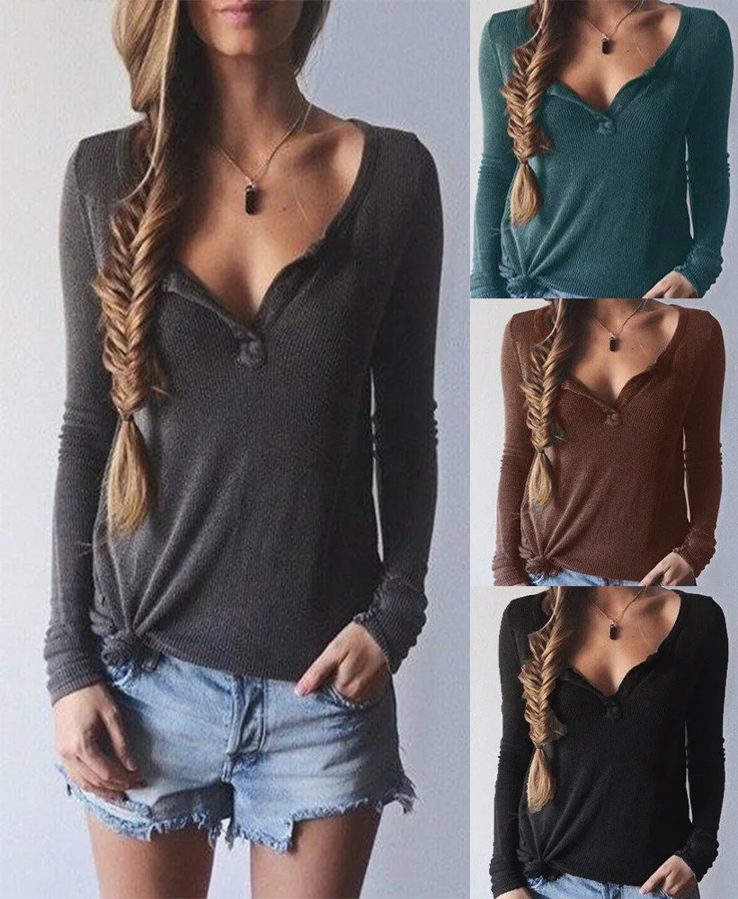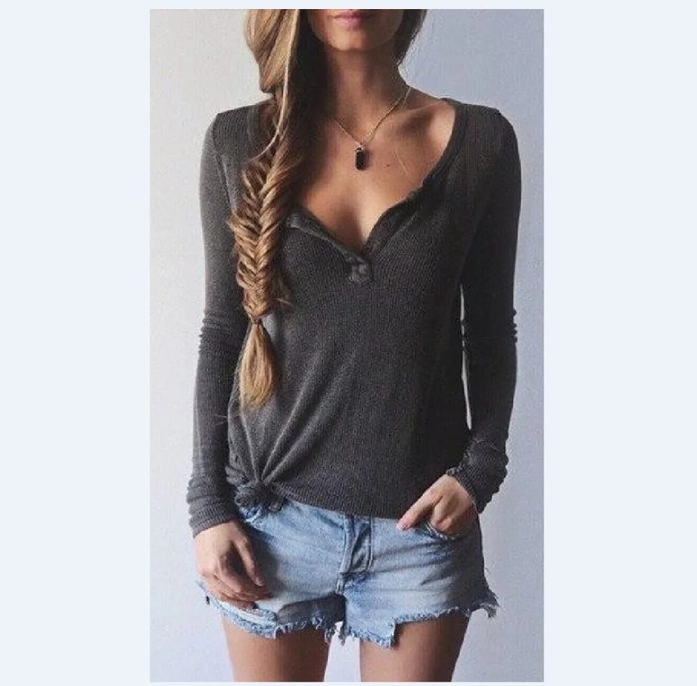 FREE SHIPPING 2018 V Neck Long Sleeve T-Shirt JKP1353