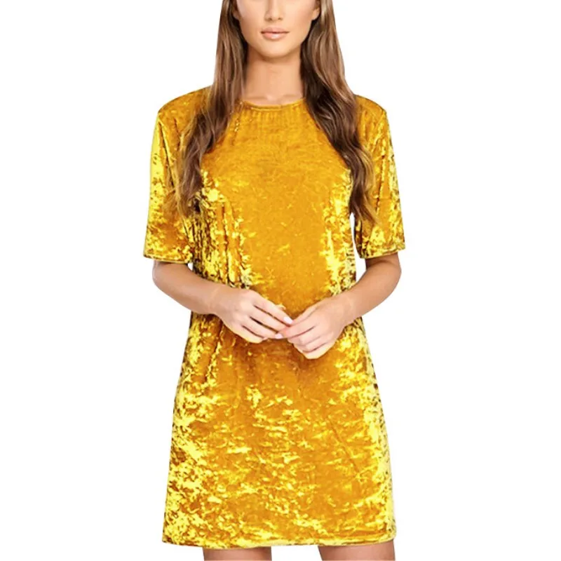 FREE SHIPPING !! 2018 Women Round Neck Short Sleeve Crushed Velvet Party Dresses JKP939