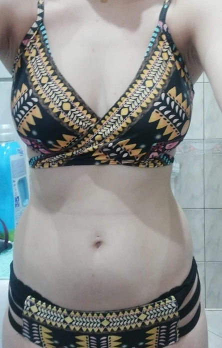 Very beautiful swimsuit. Exactly as the photo. The Color Is bright and rich. Size L fit for height 174 and parameters of 91/70/95. I was so afraid that come with such a pattern, like other stores. AND lo and behold .... swimsuit good quality and the same as the description. It Is cool.
