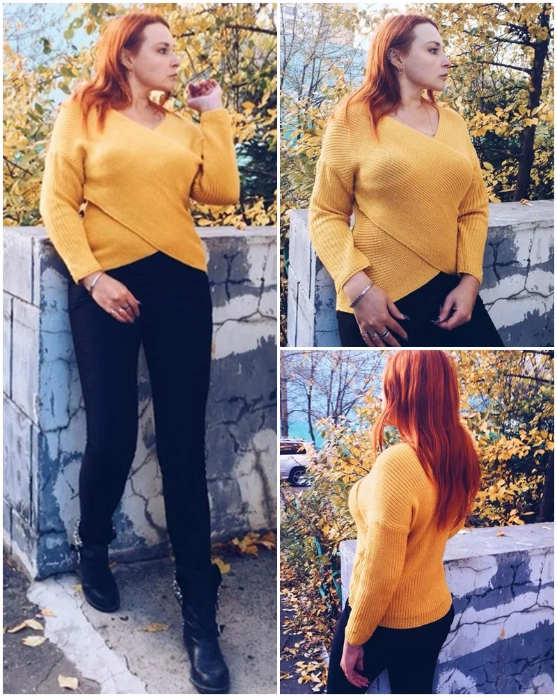 FREE SHIPPING 2019 Cross v neck knitted winter sweater JKP1416