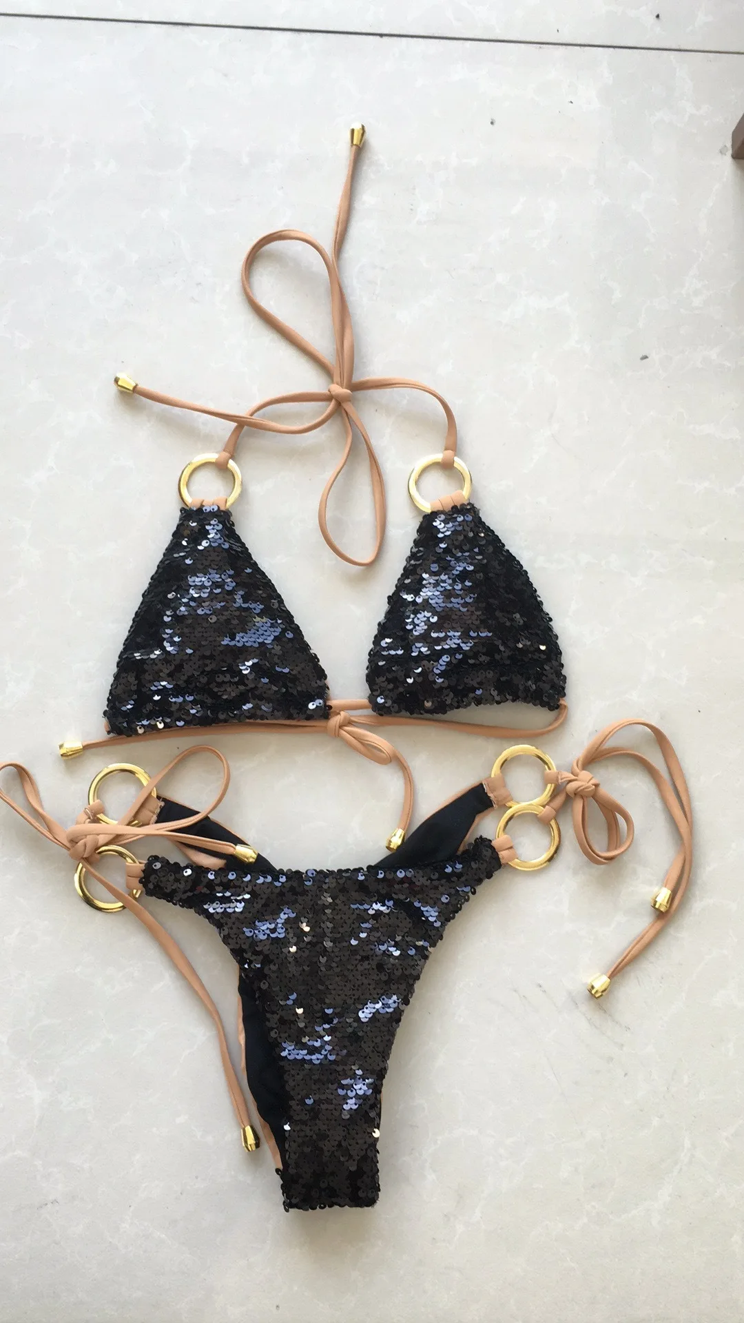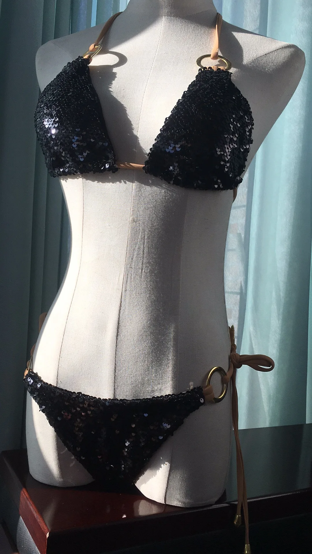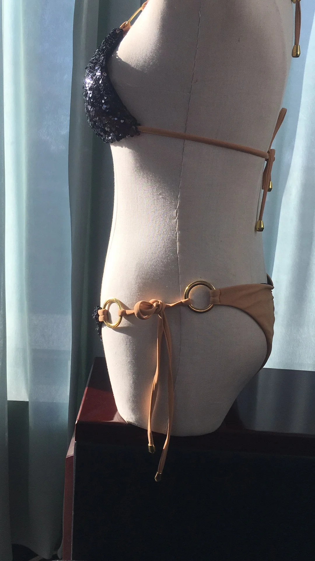 I'm very happy! The swimsuit looks great in front and behind. On the girth of the chest 85 and hips 95 i took m. Asked the store to change the size from s to m before shipping. Panties of good depth, but the bra is small, the cups are almost flat. For magnificent breasts will not go for sure. But i have a small chest, so everything is great! Threads, of course stick out, and the lining in places is visible from the side, but for me it's trifles. Sfotala as could)